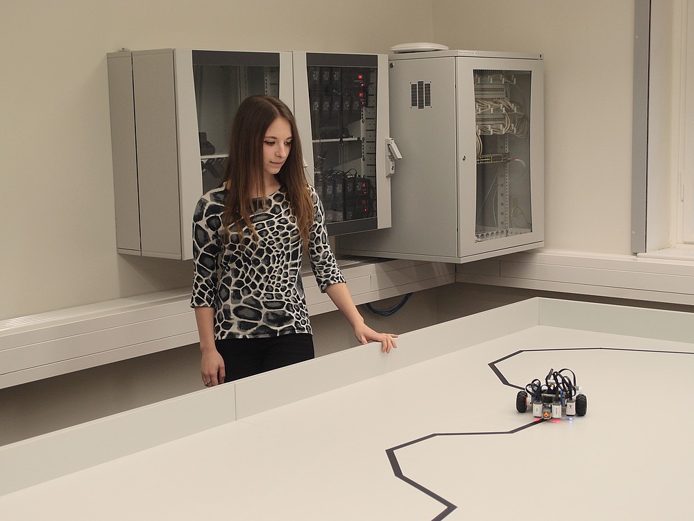 Im zweiten Teil mussten Roboter programmiert und das entsprechende Java-Programm optimiert und parametriert werden, um einen vorgegebenen Parcours in möglichst kurzer Zeit zu durchfahren. Hierzu stehen den Lego-NXT-Fahrzeugen verschiedene Sensoren zur Verfügung, etwa Lichtsensoren. Die Teams waren mit großem Einsatz bemüht, dass ihr Fahrzeug die schnellste Rundenzeit erzielt.