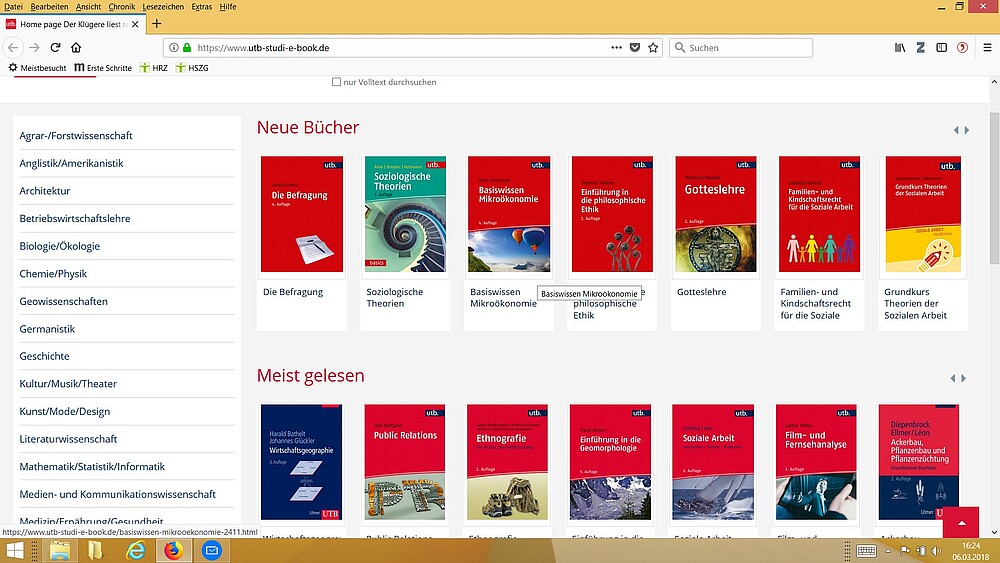 2018: Vollzugriff auf elektronische Lehrbücher des Verlags utb