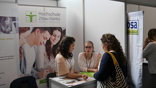 Auf der 22. grenzüberschreitenden Jobmesse in Zgorzelec war auch die Hochschule Zittau/Görlitz vertreten. Die Besucher des Hochschulmessestands wurden durch Studierende des Studienganges Wirtschaft und Sprachen-Polnisch beraten.