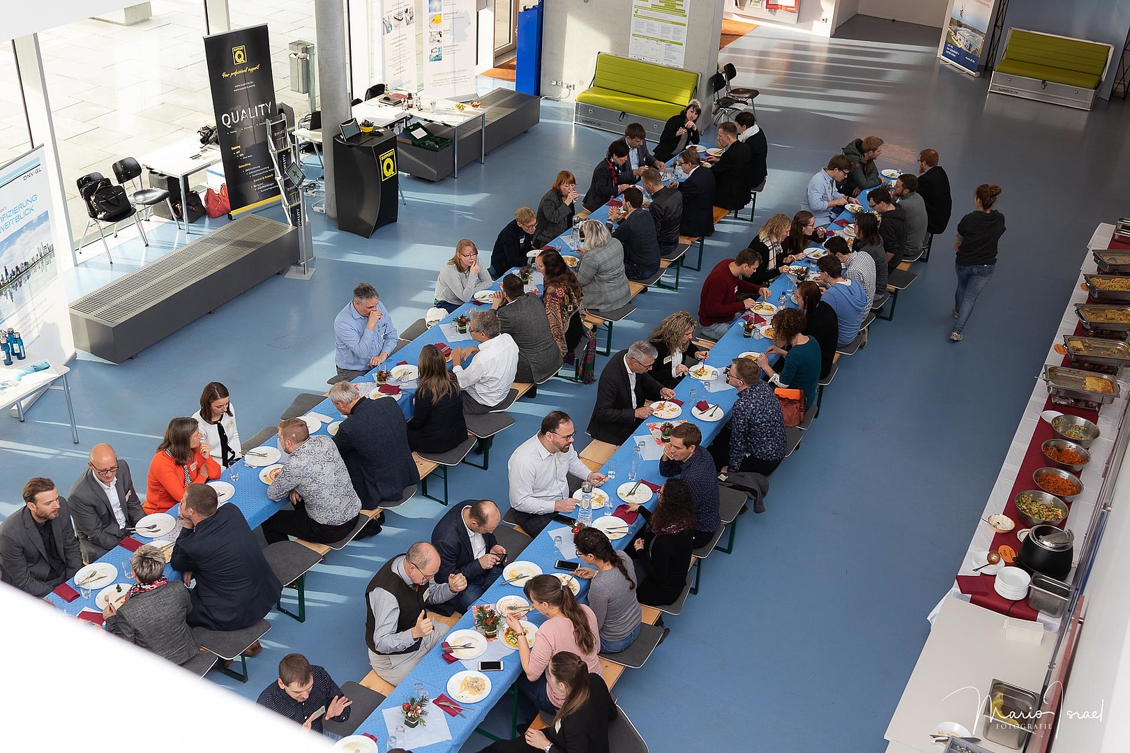 Das Rahmenprogramm war nicht minder spannend. Im „Markt der Möglichkeiten“ konnten die Unternehmen z. B. in der sog. „IMS-Klinik“ ihre Managementsystem-Wehwehchen mit unseren Fachexperten beraten, Livedemonstrationen von IMS-Software erleben oder sich ein IMS-T-Shirt drucken lassen. Eine Exkursion zur fit GmbH mit Einblicken in die praktische Umsetzung von Managementsystemen rundete das Fachprogramm ab.