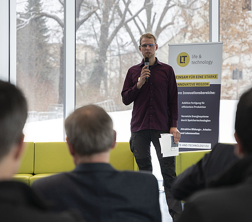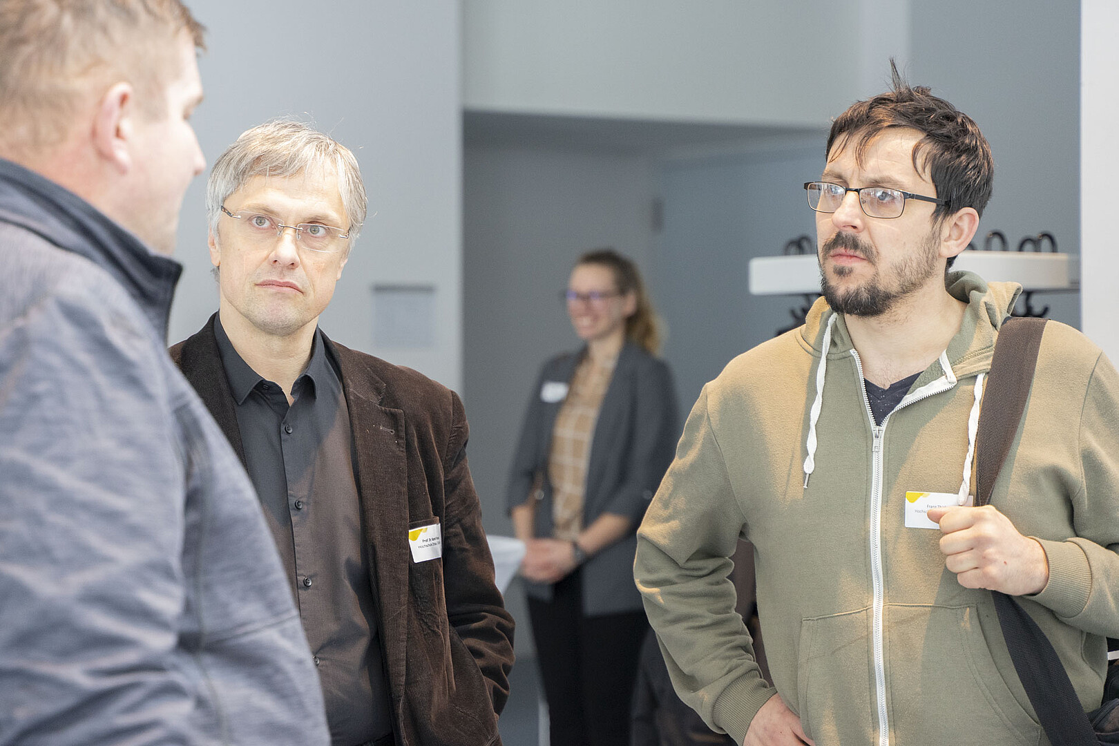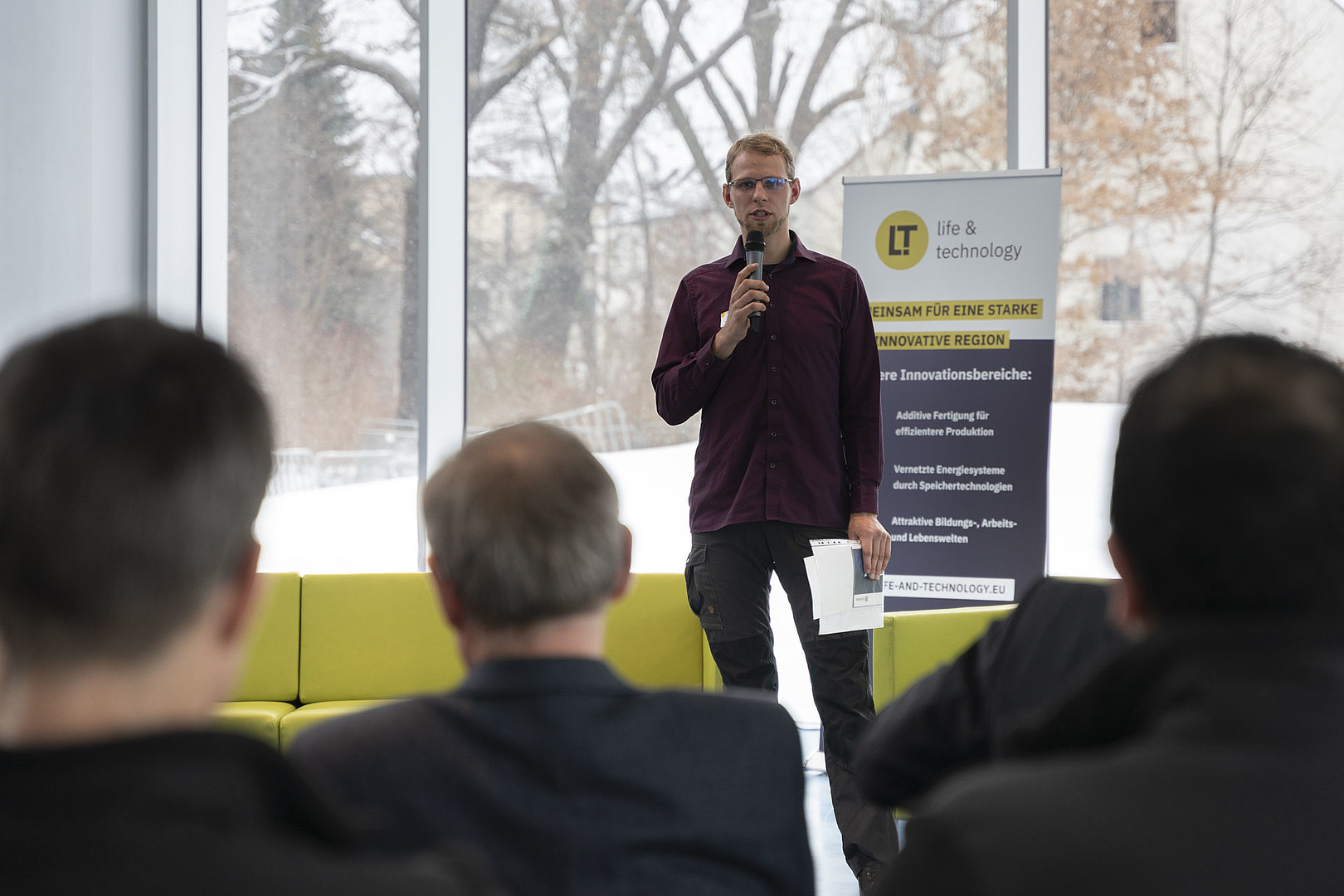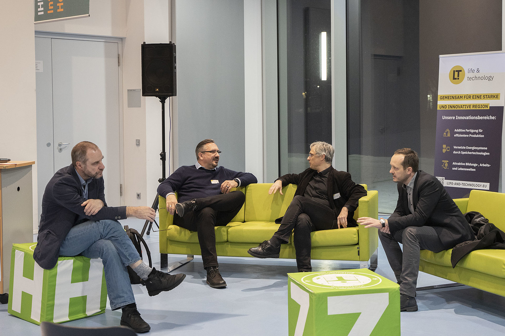 Das gläserne Foyer im Haus IV der Hochschule Zittau/Görlitz am Standort Zittau ist sichtbar gut gefüllt: 60 Vertreterinnen und Vertreter von regionalen Unternehmen, Verwaltungseinrichtungen sowie Forschungseinrichtungen tauschen sich zu den Kernthemen „Additive Fertigung”, “Vernetzte Energiesysteme und Speichertechnologien” und “Attraktive Bildungs-, Arbeits- und Lebenswelten” des Bündnisses “Lausitz – Life & Technology” aus.