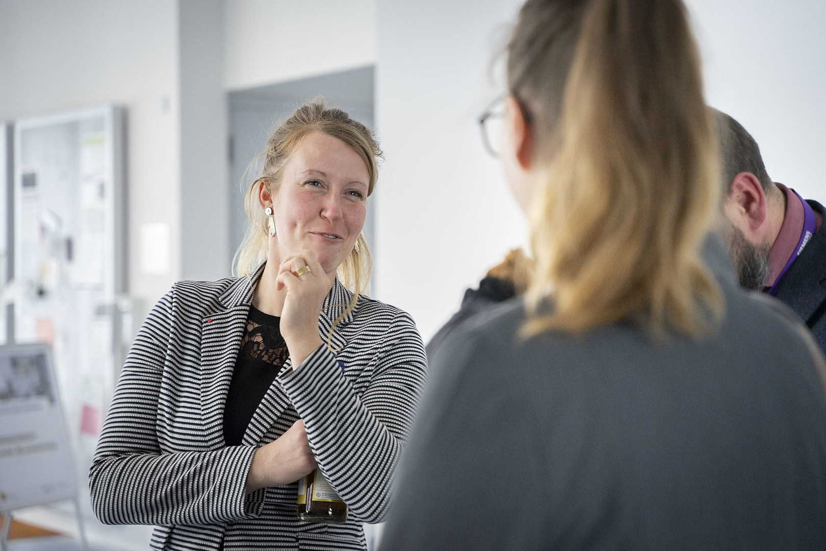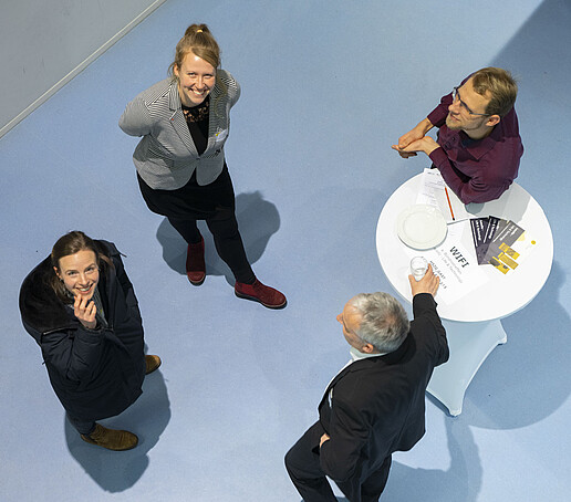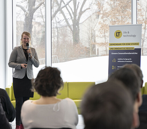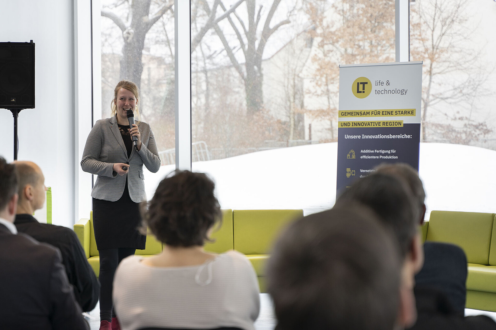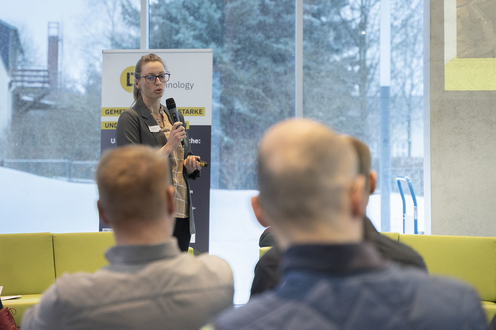 Das gläserne Foyer im Haus IV der Hochschule Zittau/Görlitz am Standort Zittau ist sichtbar gut gefüllt: 60 Vertreterinnen und Vertreter von regionalen Unternehmen, Verwaltungseinrichtungen sowie Forschungseinrichtungen tauschen sich zu den Kernthemen „Additive Fertigung”, “Vernetzte Energiesysteme und Speichertechnologien” und “Attraktive Bildungs-, Arbeits- und Lebenswelten” des Bündnisses “Lausitz – Life & Technology” aus.