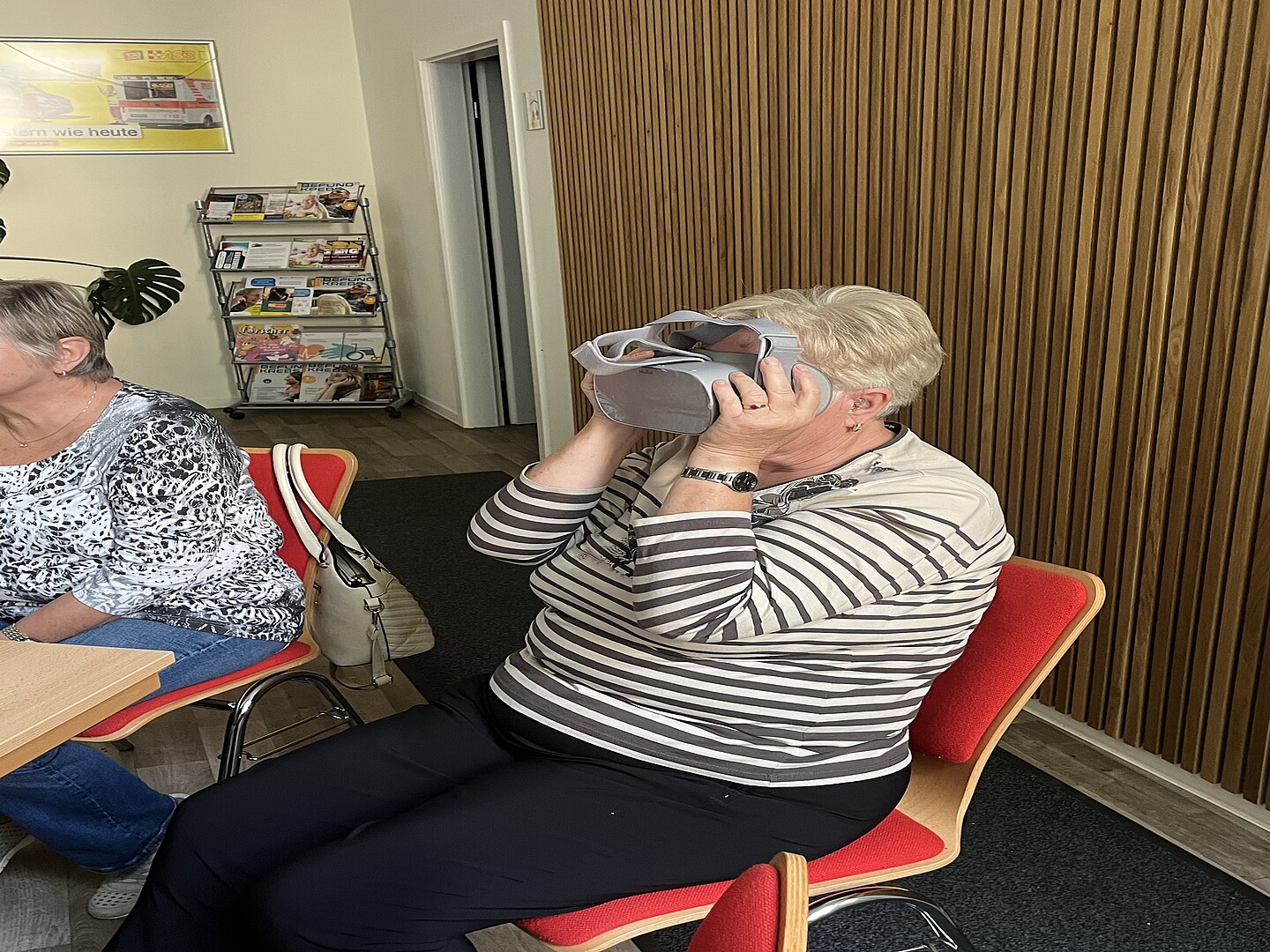 Ebenfalls vorgestellt wurde eine smarte Medikamentenbox, die mit Erinnerungsfunktionen dabei unterstützt, Medikamente zuverlässig einzunehmen. Gerade für ältere Menschen ist dies eine wertvolle Hilfe, die nicht nur Sicherheit gibt, sondern auch Angehörige entlasten kann. Ein weiteres Highlight war die VR-Brille, mit der virtuelle Ausflüge in ferne Länder oder spannende Erlebniswelten möglich werden. Viele Besucherinnen und Besucher waren begeistert, wie eindrucksvoll und realitätsnah diese Erfahrungen wirken – und welch großes Potenzial solche Anwendungen auch für Aktivierung und Teilhabe bieten.