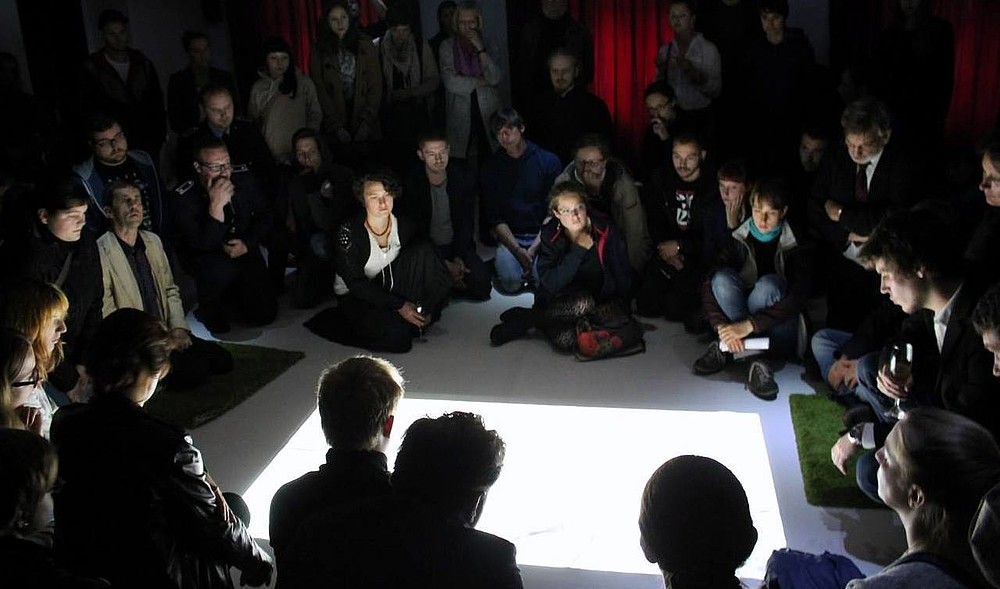 an verschiedenen künstlerischen Workshops teil. Die Ergebnisse vom Sommersemester wurden am 20. Juni präsentiert. Insgesamt fünf Workshop-Leiter in den Bereichen Schauspiel, Körpersprache, Bildende Kunst, Chor und Multimedia betreuten die Studenten und halfen Ihnen bei der Auseinandersetzung mit dem Thema „Abendland und Morgenstern“. Selbiges wurde passend, zu Zeiten der gruseligen „völkischen Bewegungen“ und der zugespitzten Asylpolitik, gewählt.