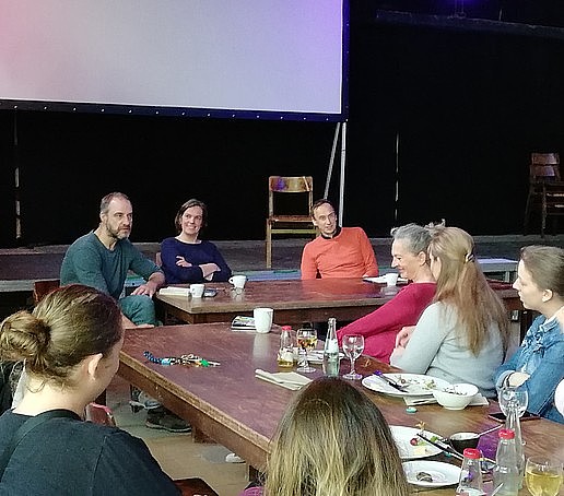 Zum Start in den Abend reflektierte Professor Dr. Raj Kollmorgen auf anregende Weise die verschiedenen Module des Studiengangs. Und natürlich hatte er zu jedem ein passendes Buch dabei – kein Lehrbuch, sondern den berühmten Blick über den Tellerrand. Dabei erhielten alle noch die eine oder andere Lektüreempfehlung. Nach dem Abendessen ermutigte Dr. Julia Gabler die Alumni mit Neugier und abenteuerlicher Lust auf verschiedene Lebenswelten die empirische Forschung zu bestreiten und illustrierte dieses Plädoyer mit einem Ausschnitt aus Donna Haraways „Unruhig Bleiben“ zu beobachtender Koexistenz als forscherische Grundhaltung. Mit Tanz, Gesprächen und Gelächter klang der Tag dann gemütlich aus.
