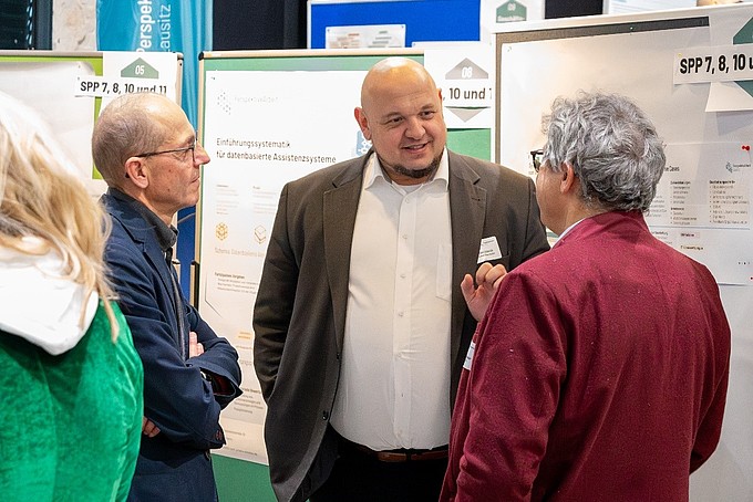 Folgende Themen wurden hierbei von den jeweiligen Schwerpunktprojekten vorgestellt: Die ergonomische Unterstützung der manuellen Montage durch KI, die Gestaltung mobiler Arbeit bei der Montage von PV-Anlagen, KI Systeme zur intuitiven Nutzung von Robotern in der Fertigung, Systeme zur Erfassung und Bewertung physischer und psychischer Belastungsfaktoren im Umgang mit KI, die Vorstellung eines digitalen Lernmanagementsystems, die Digitalisierung laboranalytischer Prozesse sowie des Wissensmanagements, eine ganzheitliche Vorgehensweise zur Implementation von datenbasierten Assistenzsystemen, die Etablierung eines Entscheidungsunterstützungssystems, die Nutzung von LLMs und RAG, ein KI-gestütztes Assistenzsystem zur Qualitätssicherung, ein Konzept zur sicheren und effektiven Nutzung von KI-Assistenzsystemen in der Produktion sowie Anwendungsmöglichkeiten unternehmensinterner Chatbot-Lösungen.