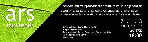 21.11.2018 | ARS MORIENDI – Konzert mit zeitgenössischer Musik zum Totengedenken.