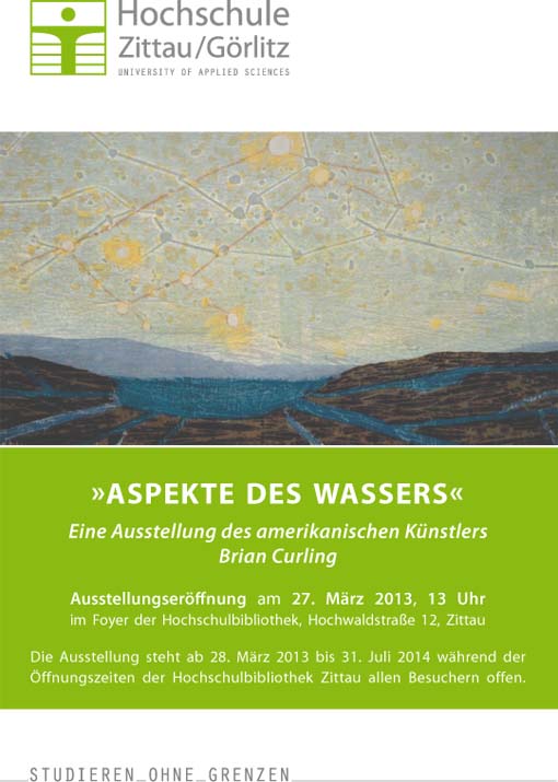 Im Wintersemester 2012/13 führt der amerikanische Gastkünstler Brian Curling im Rahmen eines Kunstprojektes interessierte Studenten und Mitarbeiter der Hochschule Zittau/Görlitz an eine künstlerische Auseinandersetzung zum Thema "Wasser, Wassersysteme und Landschaft" heran.