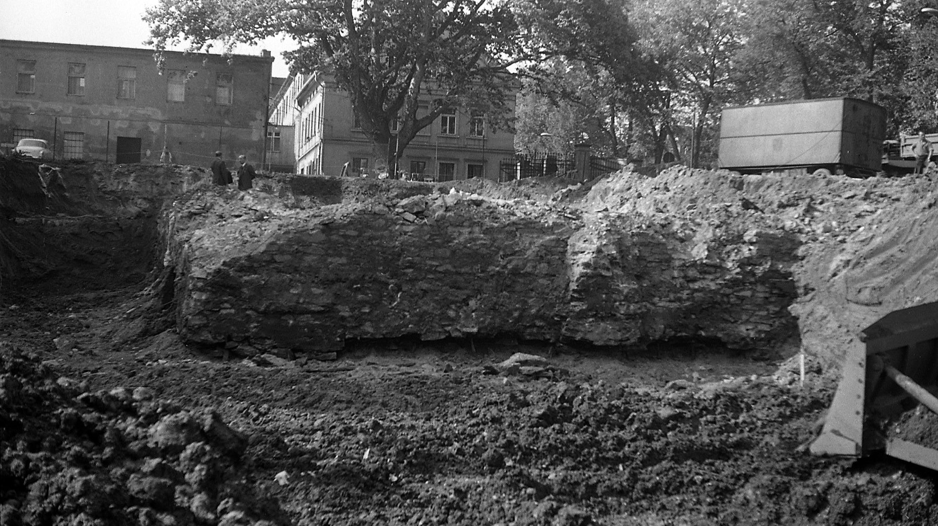 Mit den Gründungsarbeiten für das ehemalige Verwaltungebäude der Hochschule wurden 1971 die mächtigen Fundamente des Kaiserhauses (Foto) leider größtenteils entfernt. Die längs der Theodor-Körner-Allee verlaufenden Mauerreste sollten davon jedoch nicht betroffen sein, da sie außerhalb des damaligen Baufeldes lagen. Natürlich wird im Rahmen der Gesprächsrunde auch die Nutzung des damaligen Hochschulgebäudes zur Sprache kommen. Ralf Ulbrich, Dezernent Technik und Gebäudemanagement der Hochschule, ist dazu bestens aussagefähig.