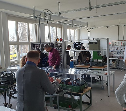 Die Gäste zeigten sich beeindruckt von den vielfältigen laborativen Möglichkeiten am Standort Zittau. So fand unter anderem eine Besichtigung des Lehrbahnhofs Zittau Süd, des leit- und sicherungstechnischen Grundlagenlabors und des gerade im Aufbau befindlichen Labors zum elektronischen Stellwerk im Haus Z I statt.