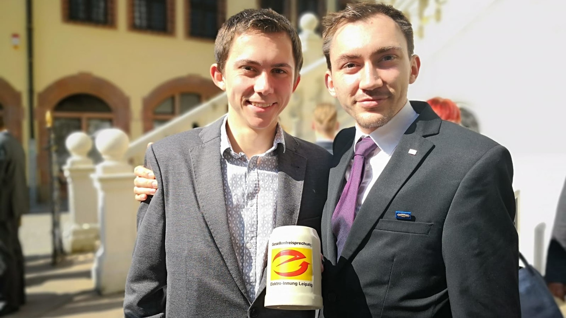 Valentin Reinhardt: Dritter im Bunde der besten KIAs war schließlich Valentin Reinhardt. Er studiert im Studiengang Automatisierungstechnik und Mechatronik und wurde bei der Gesellenfreisprechung in der Alten Handelsbörse zu Leipzig, welche durch die Elektro-Innung Leipzig durchgeführt wurde, als bester Prüfling in der Ausbildung zum Elektroniker Fachrichtung Energie- und Gebäudetechnik in der Region Leipzig ausgezeichnet.