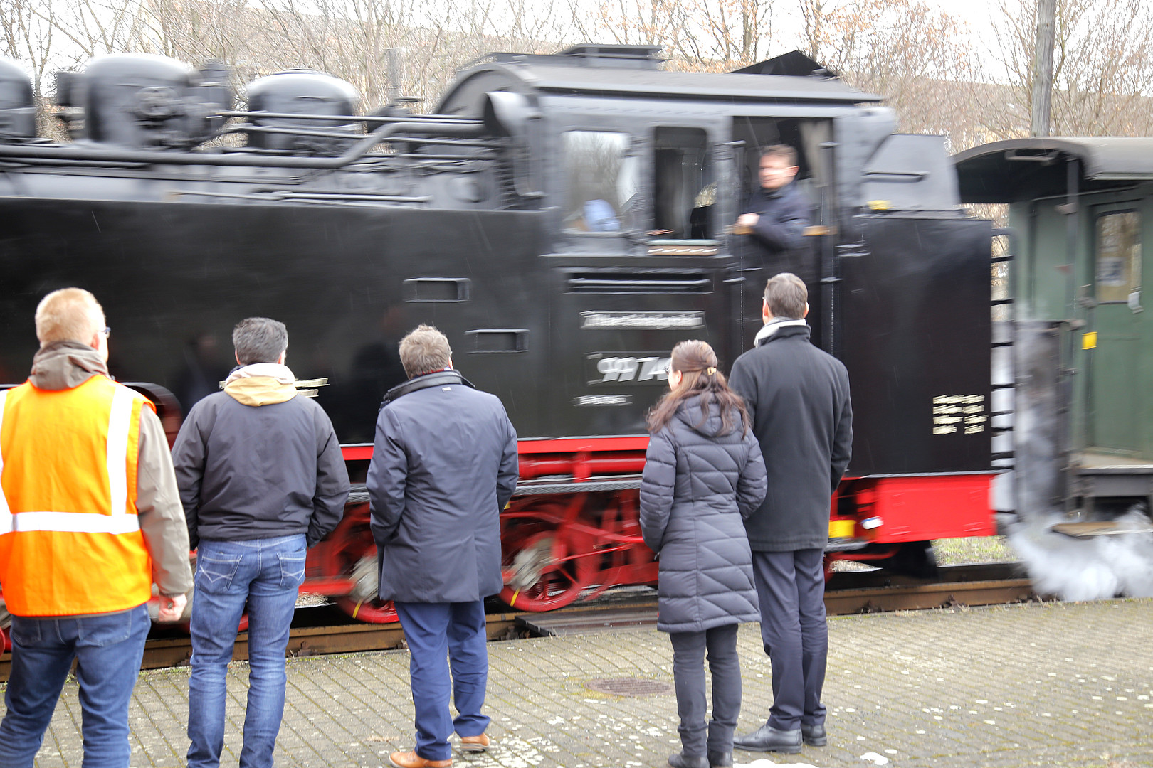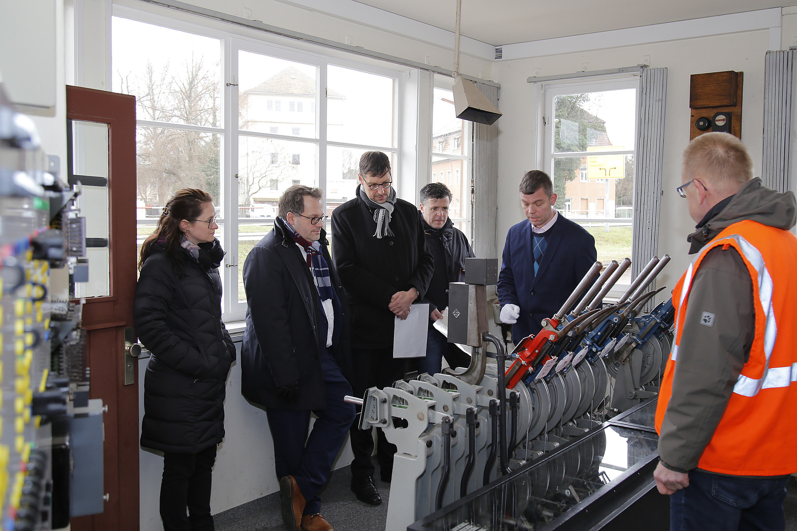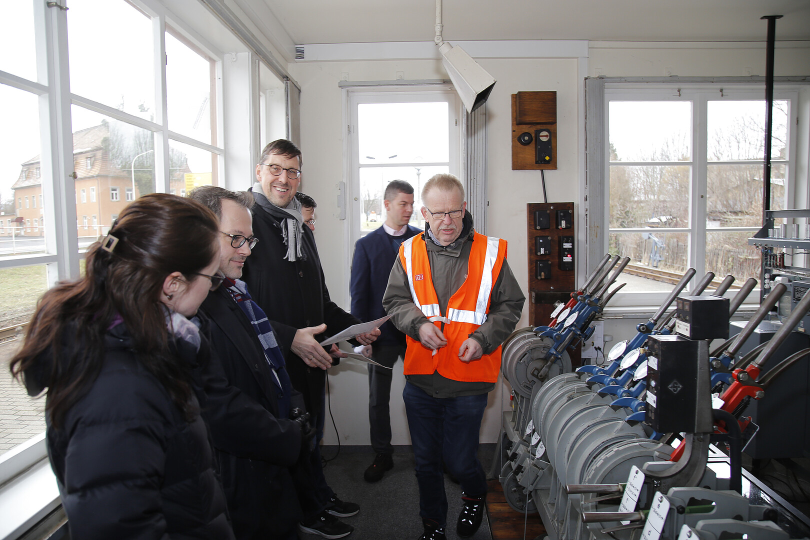 Höhepunkt des Treffens zwischen der HSZG und der FH Erfurt war der Besuch im Lehrstellwerk Zittau Süd. Volker Brade und Patrick Hornung, Mitarbeiter der Fakultät Elektrotechnik und Informatik der HSZG, demonstrierten die eisenbahnspezifische Leit- und Sicherungstechnik, die sich sowohl Erfurter als auch Zittauer Studierende aneignen. So konnten sich die Gäste direkt vor Ort einen Eindruck der praktischen Lehrinhalte verschaffen, indem sie selbst die Weichenstellung vornahmen. Gekrönt wurde dies mit einer Durchfahrt der Zittauer Schmalspurbahn.
