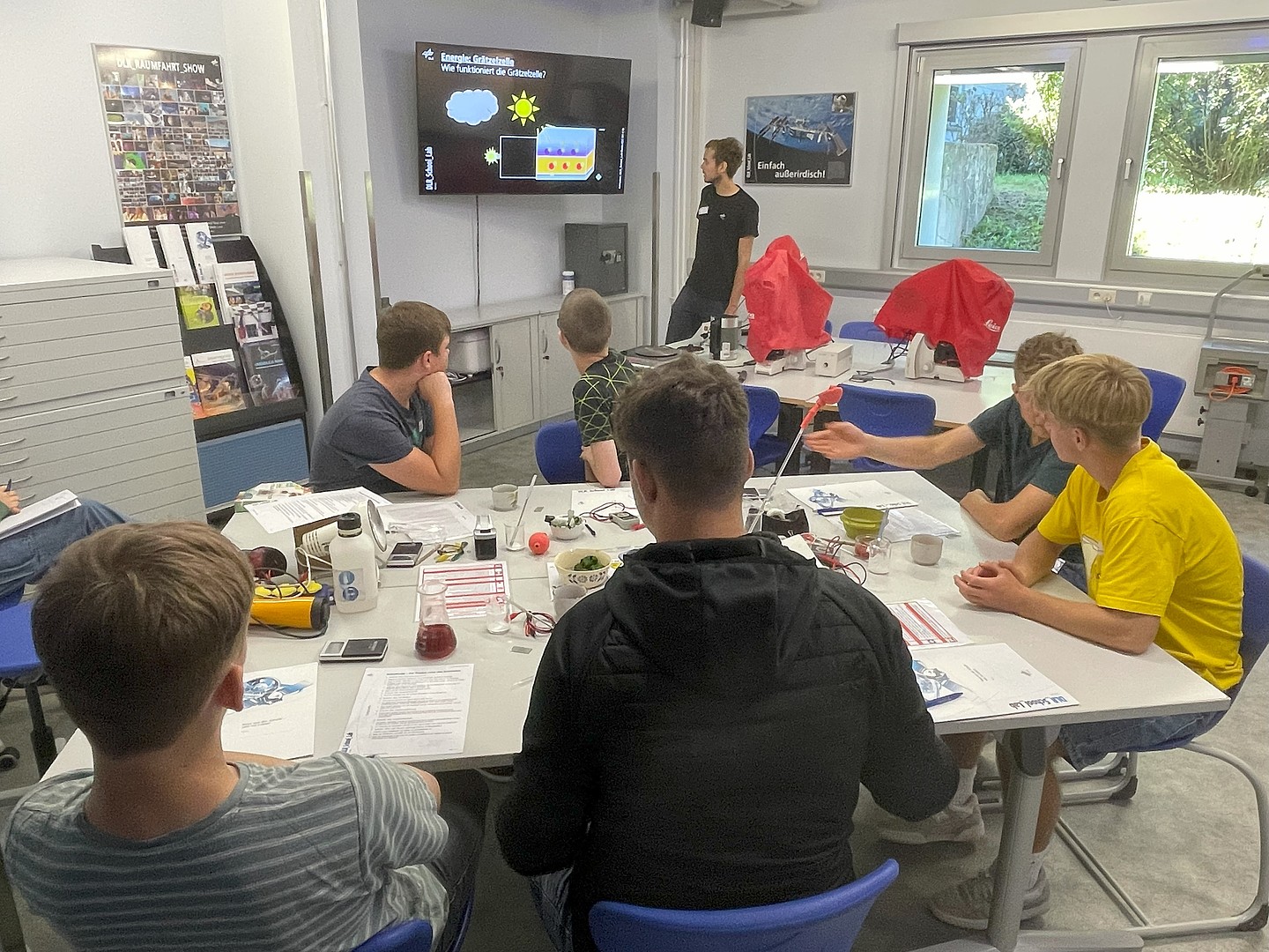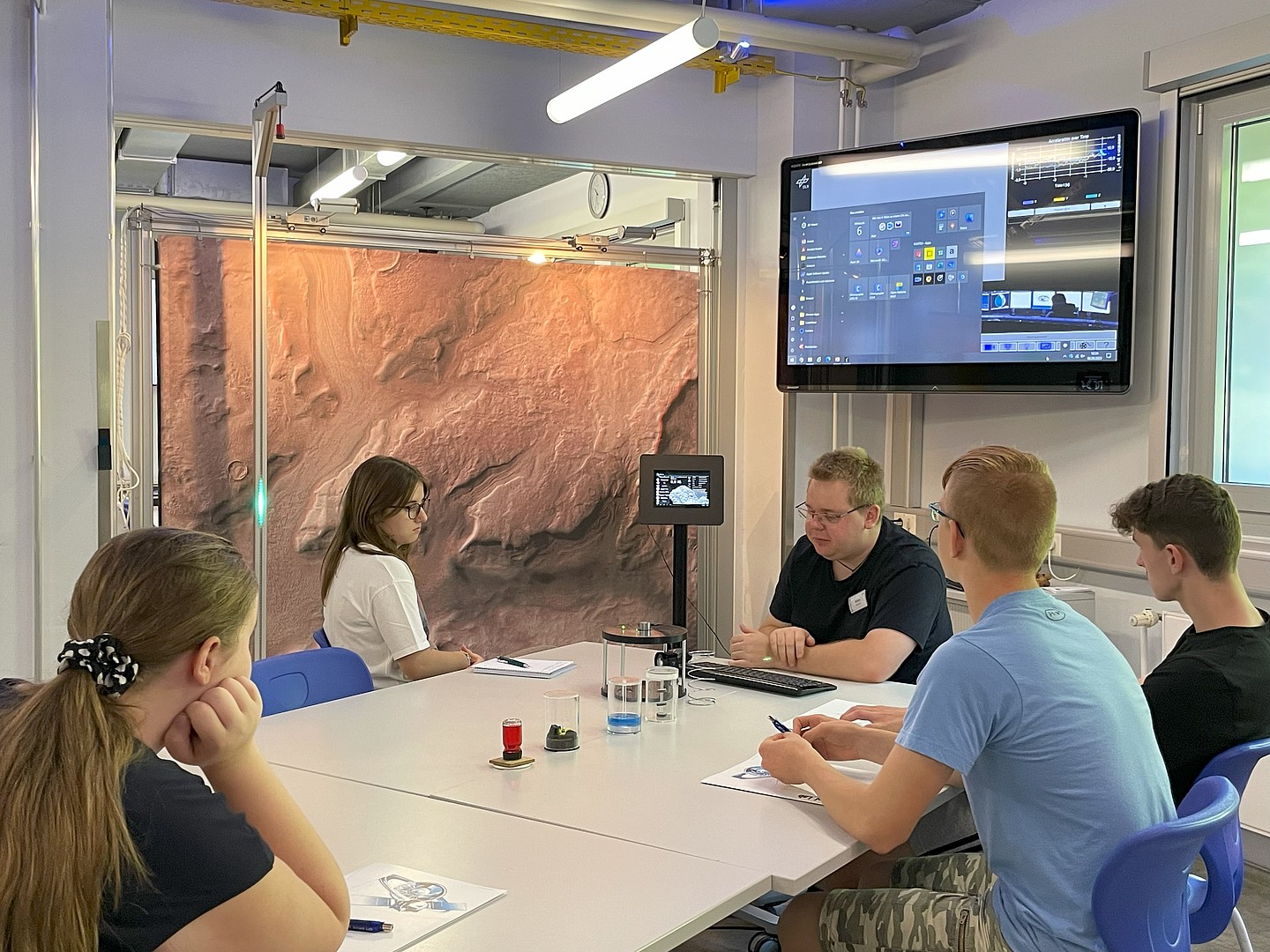 Während des Treffens bot sich neben dem Austausch über den aktuellen Stand des DLR_School_Lab an der Hochschule Zittau/Görlitz auch die Gelegenheit, eine Auswahl zukünftiger Schüler*innen-Experimente am Standort Zittau gemeinsam mit einer Schulklasse zu erleben. Unter fachkundiger Anleitung erfahrener Tutoren konnten die Jugendlichen selbst zu Forschenden werden und eigenständig spannende Versuche durchführen, die in direktem Zusammenhang mit aktuellen DLR-Forschungsthemen stehen. Dabei beschäftigten sich die Schülerinnen und Schüler unter anderem mit den Auswirkungen der Schwerelosigkeit auf den menschlichen Körper, der künstlichen Photosynthese mithilfe einer Grätzelzelle und der effizienten Speicherung von Wärme.