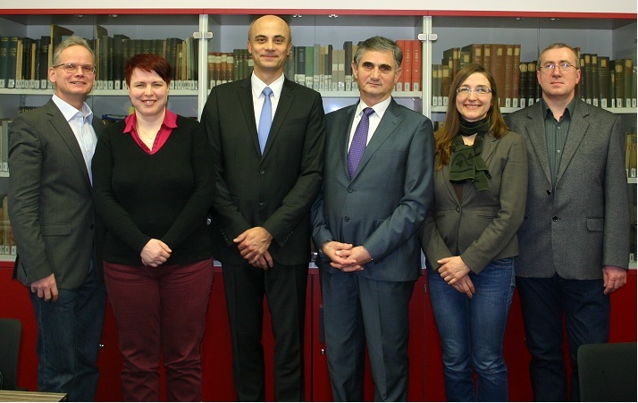 Am 11. Januar 2016 besuchten die Beauftragte der Kanzlerin der Riesengebirgshochschule (Karkonoska Państwowa Szkoła Wyższa, Jelenia Góra) Frau Kamila Biniek und Herr Bibliotheksdirektor Kazimierz Stapór die Hochschulbibliothek am Standort Zittau. Seitens unserer Hochschulbibliothek nahmen Herr Dr. Falk Maiwald, Herr Ralf Schwarzbach und Herr Kazimierz Jarema sowie Frau Cornelia Müller, Konnektorin an unserer Hochschule, teil. Der in den vergangenen Jahren eingeleitete Prozess des gegenseitigen Erfahrungsaustausches und der Zusammenarbeit wurde damit fortgesetzt.