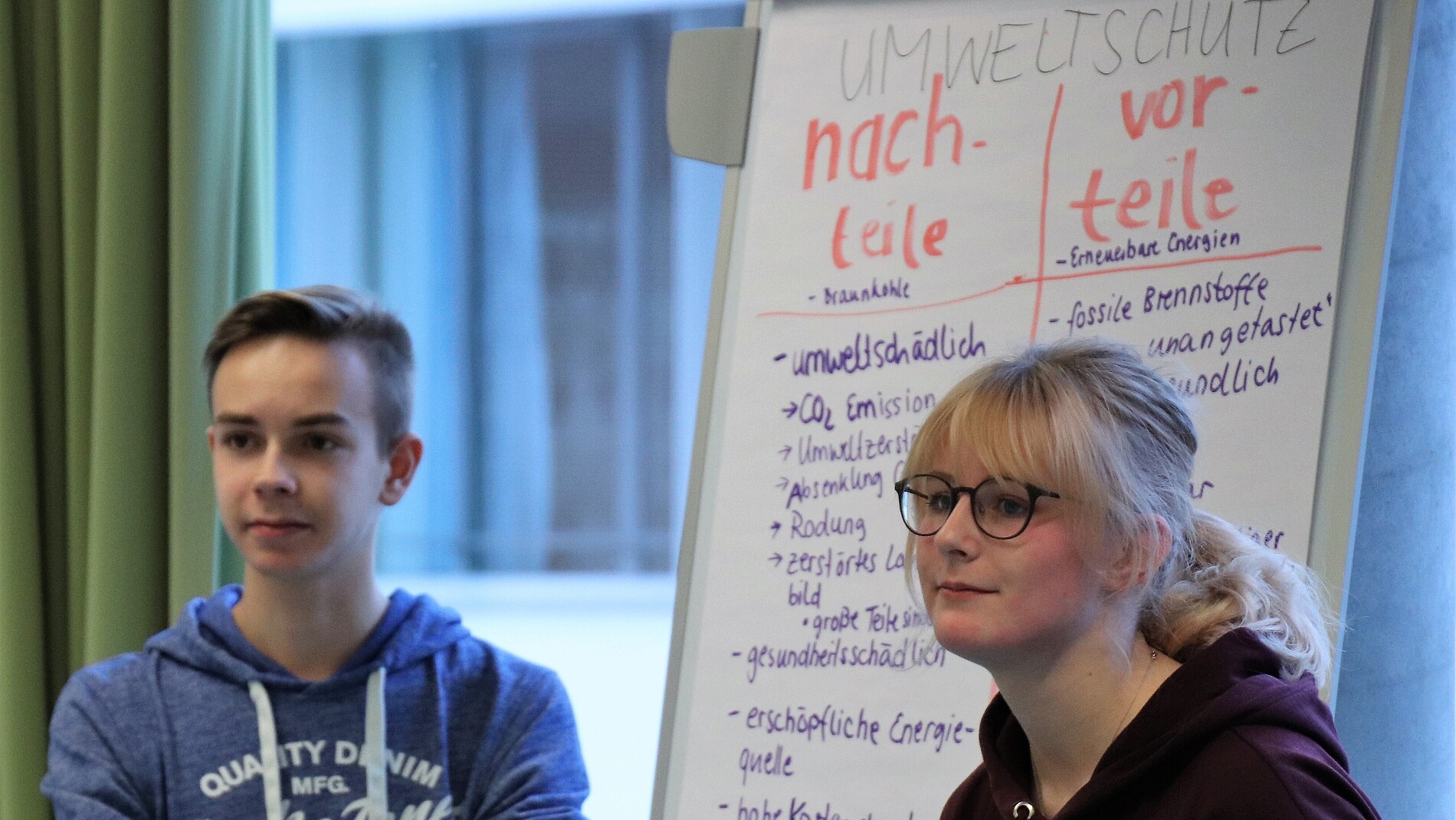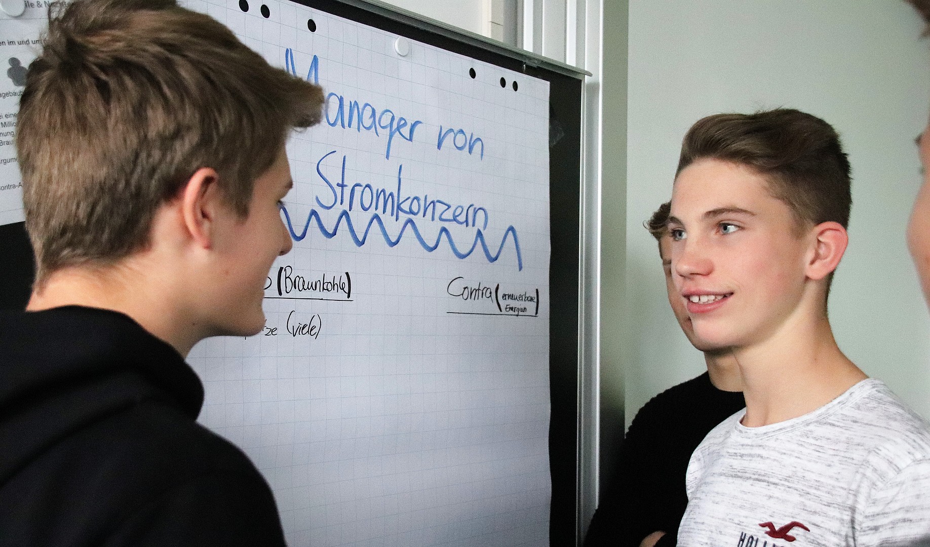 Angeboten wurde zum einen das Rollenspiel „Akteure um den Braunkohletagebau“, das ebenfalls Eric Schön leitete. Dabei schlüpften die Schüler in die Rollen von Kohlekonzernleitern, Umsiedlern, Arbeitnehmern und Umweltschützern und erörterten die Vor- und Nachteile der Stromgewinnung aus Kohle von den vier verschiedenen Perspektiven aus.