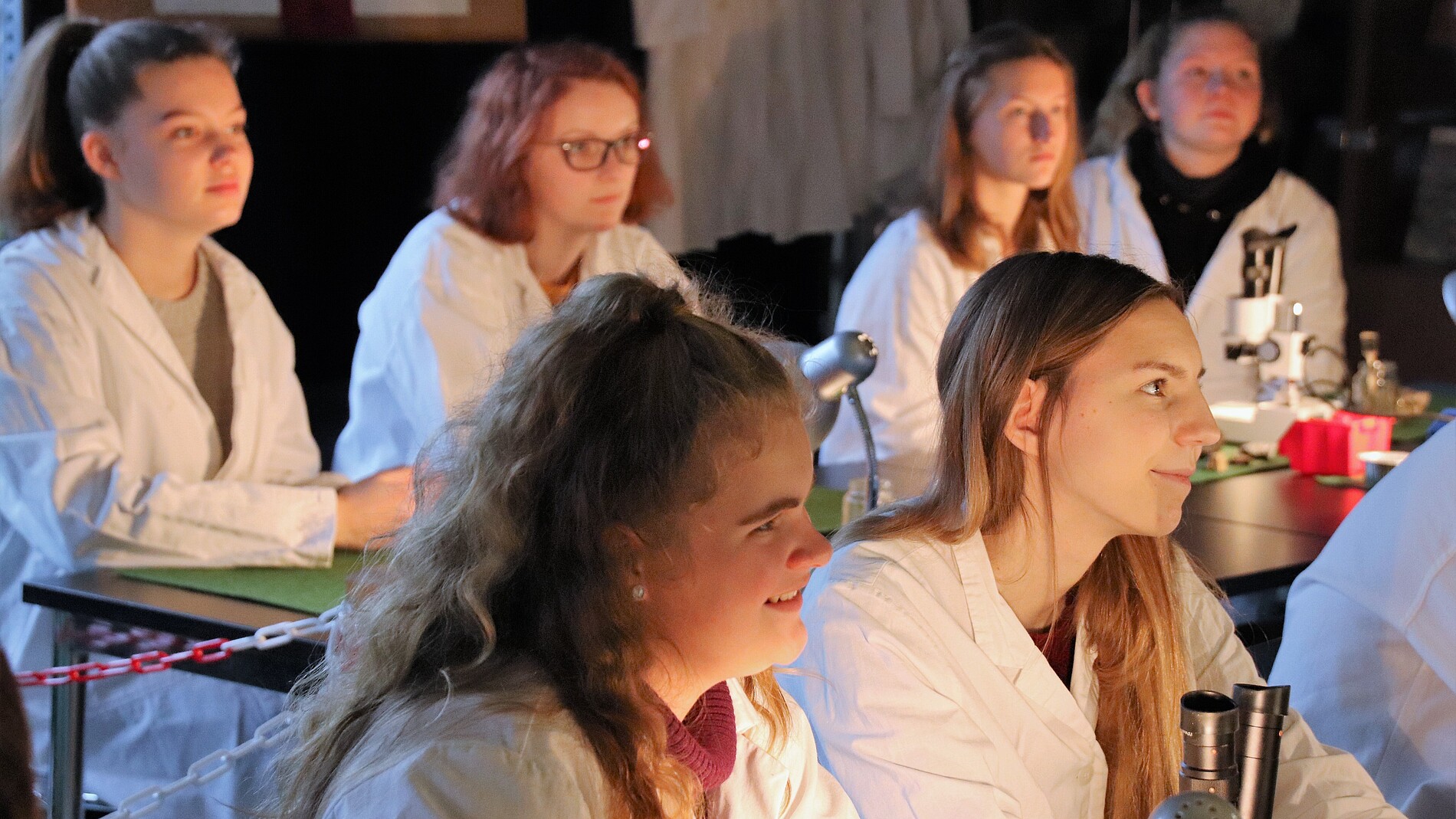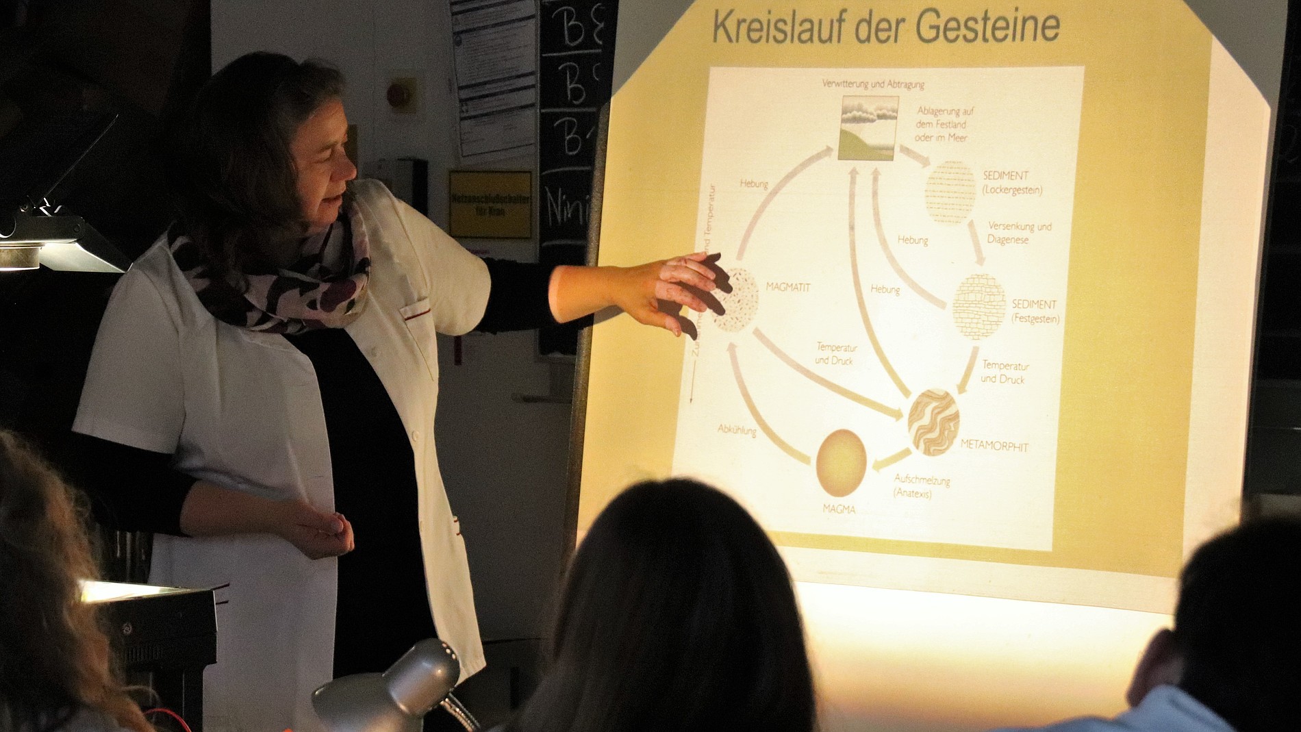 Diplom-Chemikerin Annett Franke nahm den anderen Teil der Gruppe mit ins Geoökologie-Labor um heimische Böden, Mineralien und Gesteine zu bestimmen und zu untersuchen. Mit Bestimmungsschlüssel, Mikroskop und einer Härteskala ausgestattet lernten die Schüler gängige Werkzeuge und Methoden für geoökologische Erkundungen kennen. Die Schüler zeigten so großes Interesse dafür, dass im Labor noch lange nach dem offiziellen Veranstaltungsende weitergeforscht wurde.