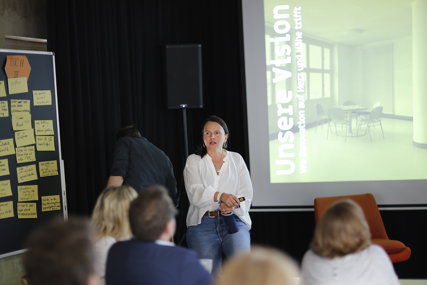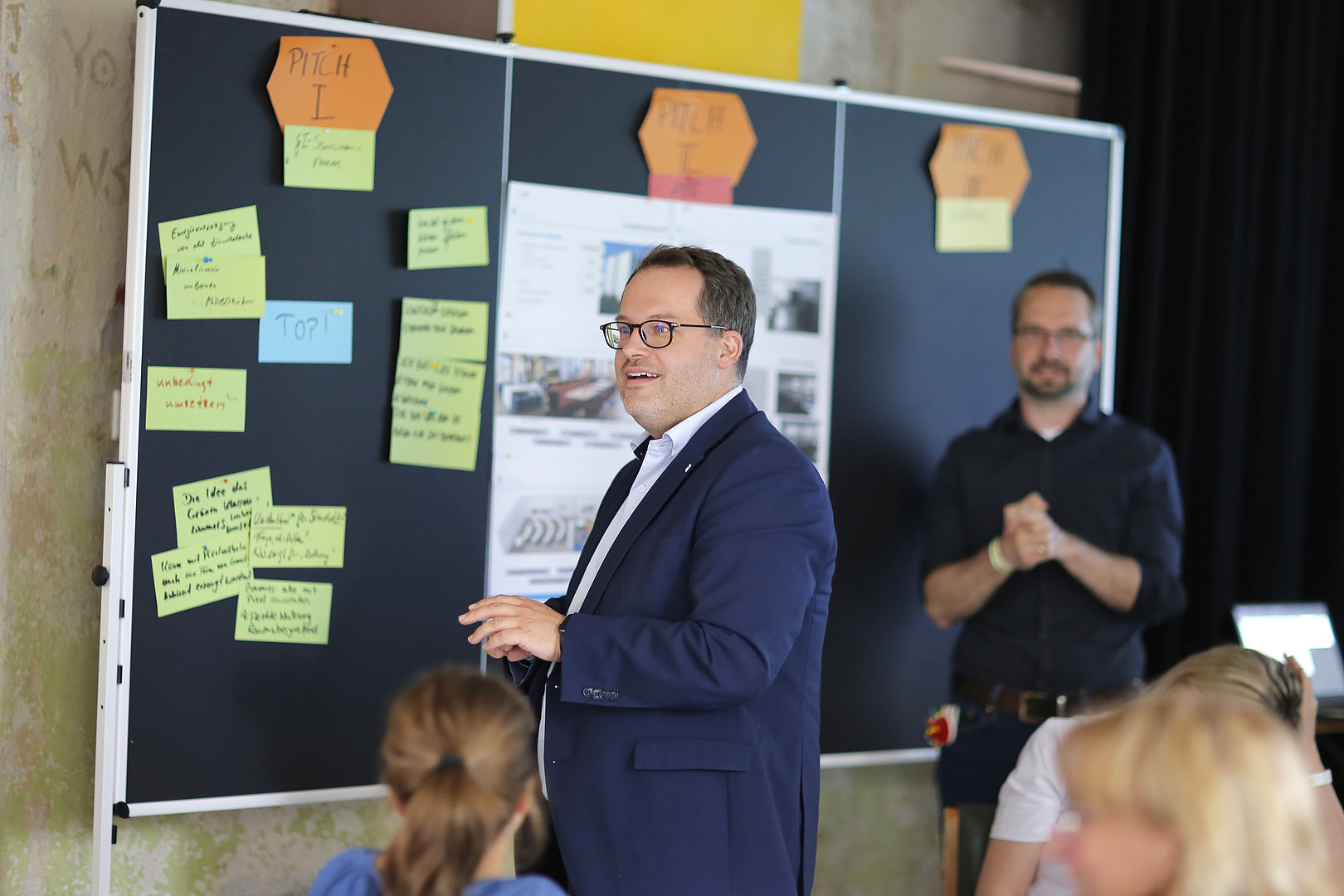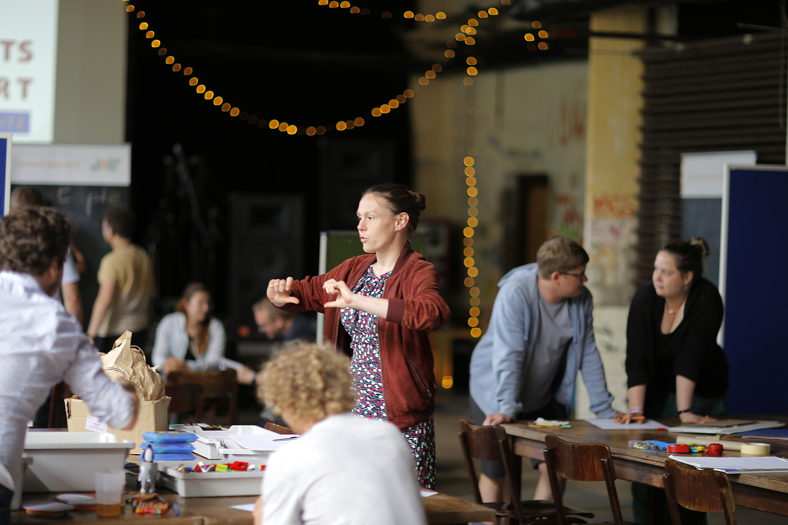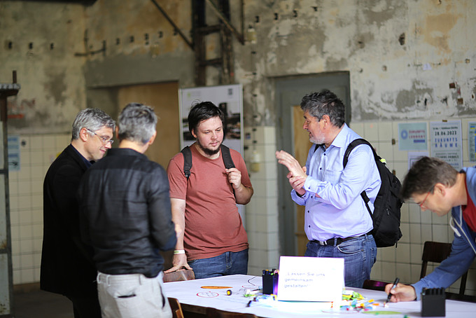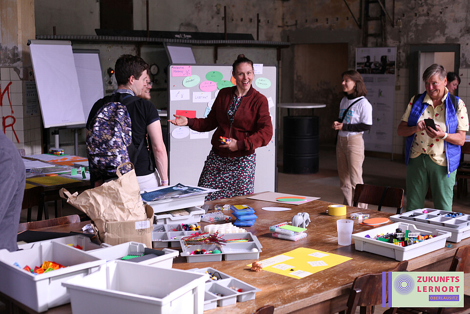 HSZG-Studierende und Prorektorin erarbeiten beim Event „Zukunftsräume" im Kühlhaus Görlitz innovative Ideen für die Gestaltung des Campus der Zukunft.