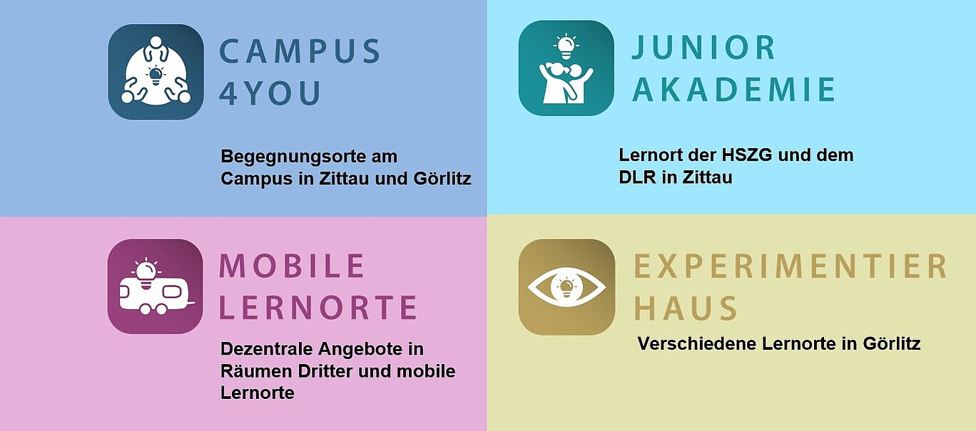 Ziel des Vorhabens "Zukunftslernort Oberlausitz" ist es, vielfältige und innovative Lehr-Lernräume im außerschulischen MINT-Bereich zu schaffen. An diesen Standorten sollen zukunftsorientierte und auf die regionale Entwicklung fokussierte Angebote etabliert werden. Hierbei werden vier Handlungsfelder fokussiert. Mit den handlungsorientierten und generationsübergreifenden Angeboten, insbesondere für die Kinder und Jugendlichen in der Oberlausitz, möchte die Hochschule die Attraktivität der Region für Familien und junge Menschen deutlich erhöhen.