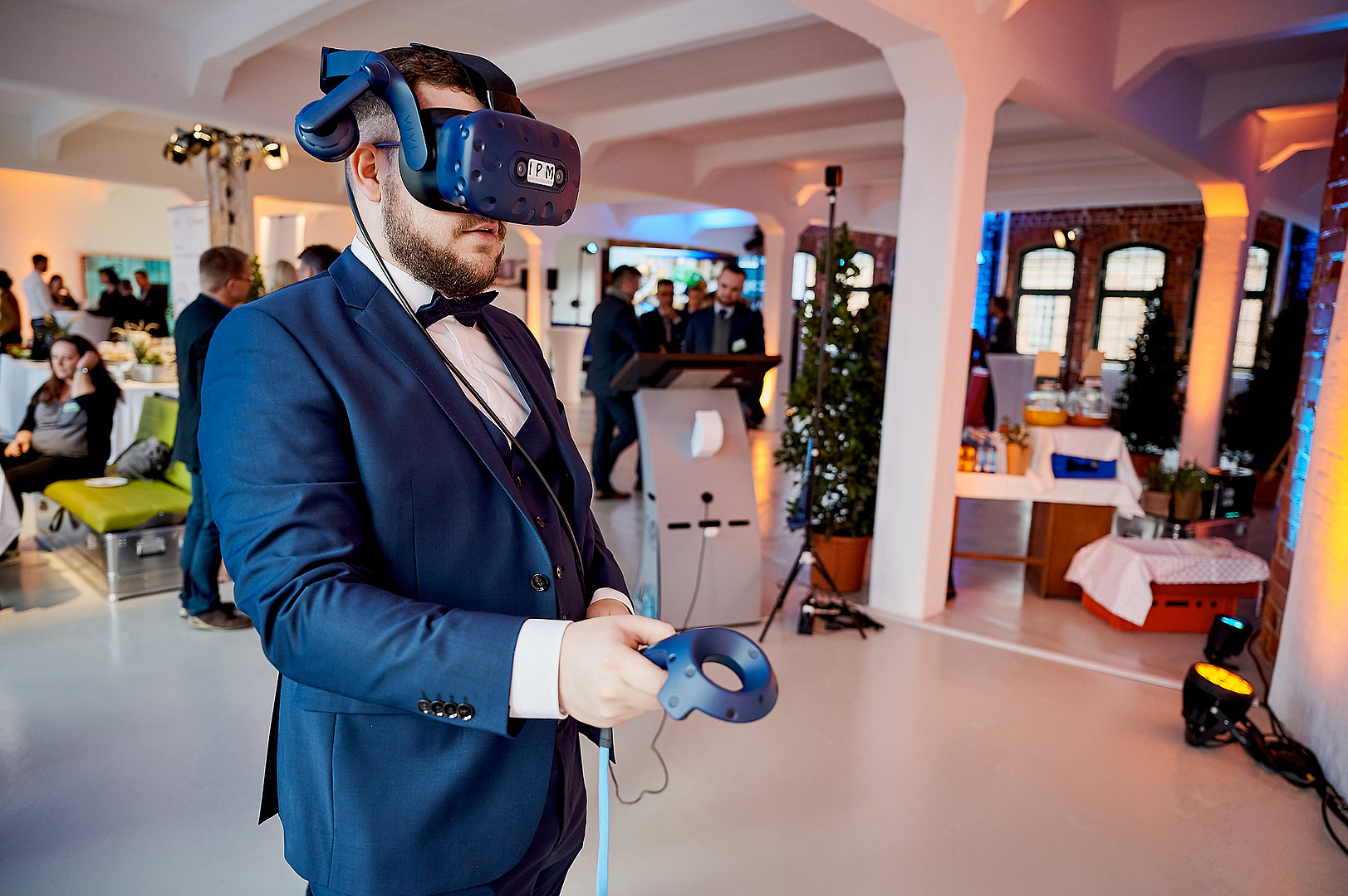 Im Anschluss konnten sich die Gäste eine VR-Brille überstreifen oder Künstliche Intelligenz im Einsatz bei der Schadensdetektierung in einem mittelständischen Unternehmen beobachten. Beides stammt aus Projekten des Instituts für Prozeßtechnik, Prozeßautomatisierung und Messtechnik, das damit seine Forschung wirkungsvoll präsentieren konnte.