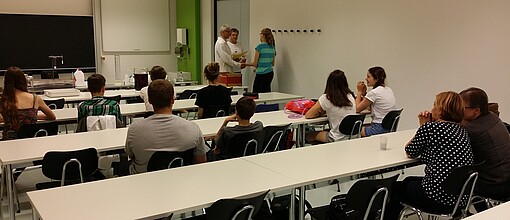 Nach der Siegerehrung und Prämierung aller Teams fand für die Schüler und Gäste eine Chemie-Schauvorlesung mit zahlreichen interessanten Experimenten statt. Dabei wurde dem Publikum auch der chemische Hintergrund der durchgeführten Versuche erläutert.