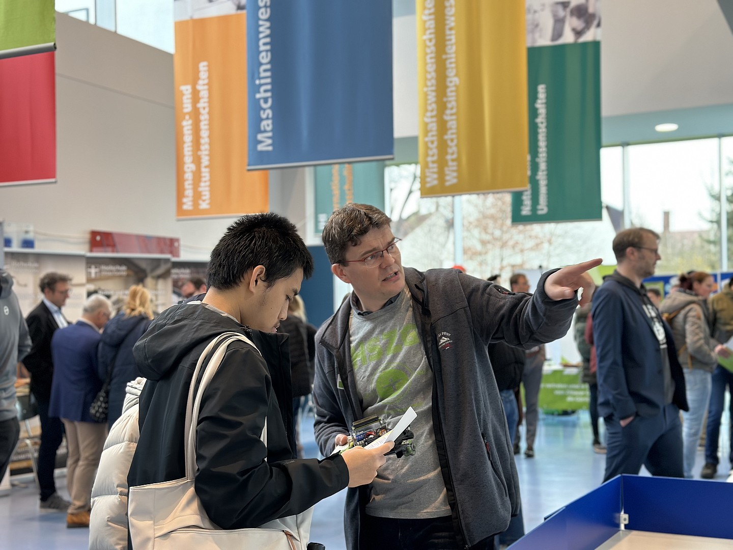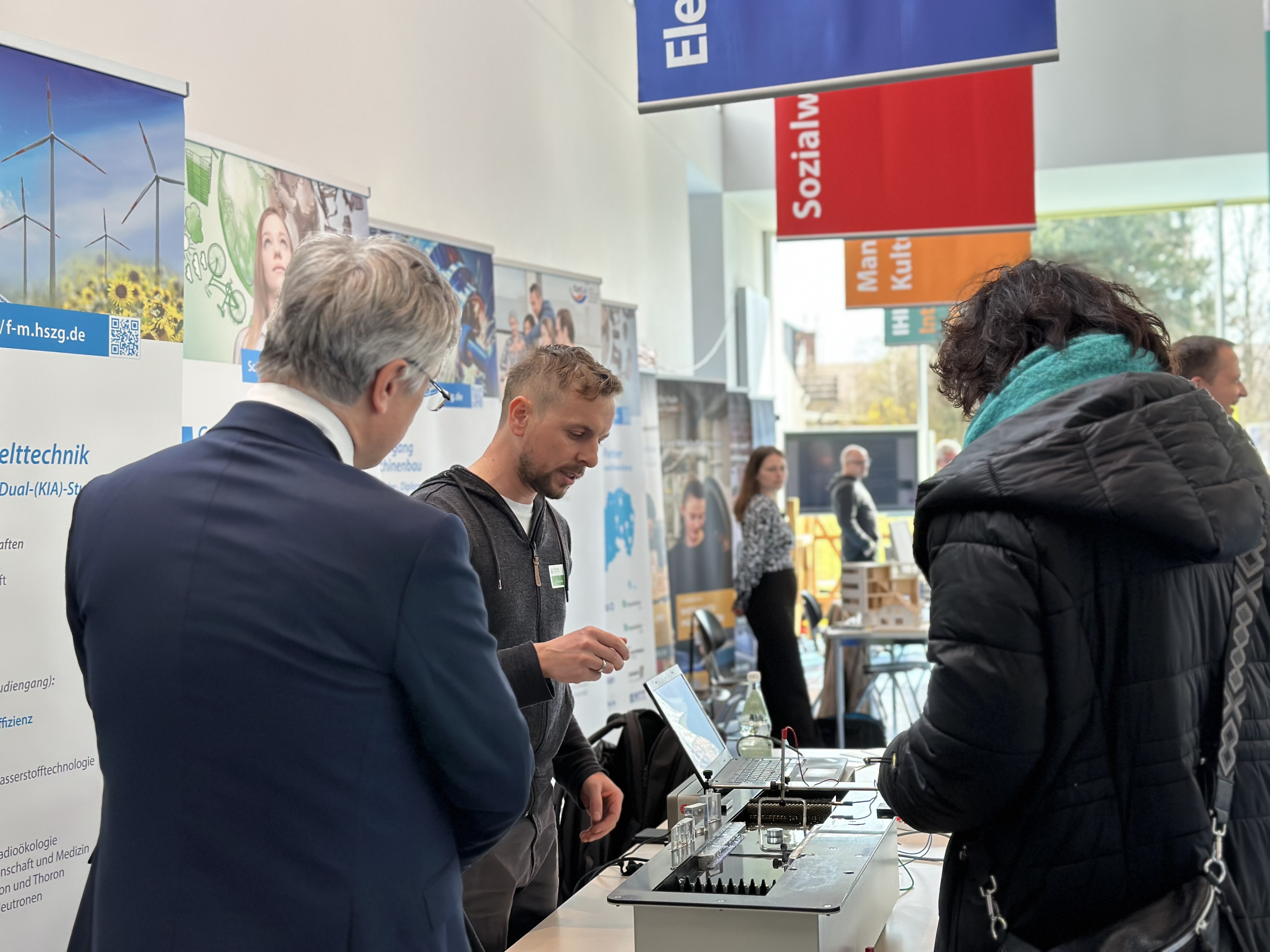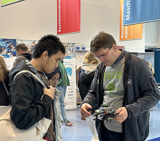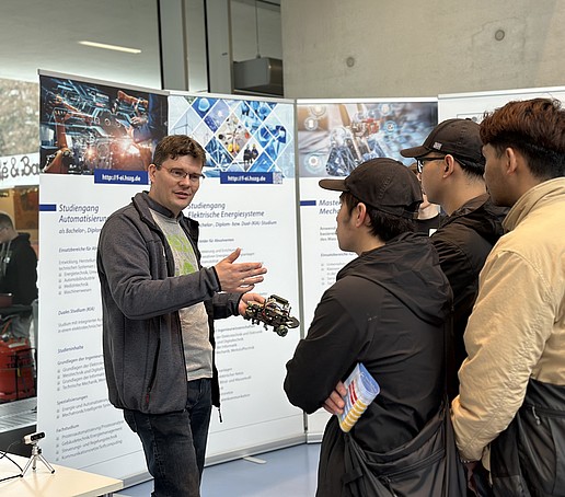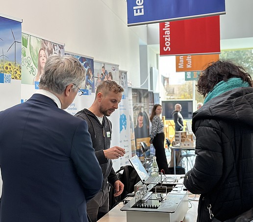 Neben der Vorstellung der Studiengänge erhielten Interessierte die Möglichkeit, persönliche Gespräche mit Hochschullehrenden, Studierenden und Mitarbeitenden der Hochschule zu führen. Die Studienberatung bot zudem individuelle Beratungsgespräche an, um bei der Studienwahl und bei Fragen rund um das Studium zu unterstützen.