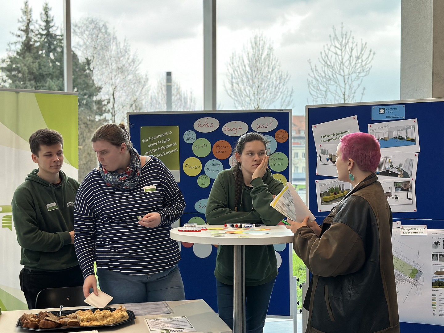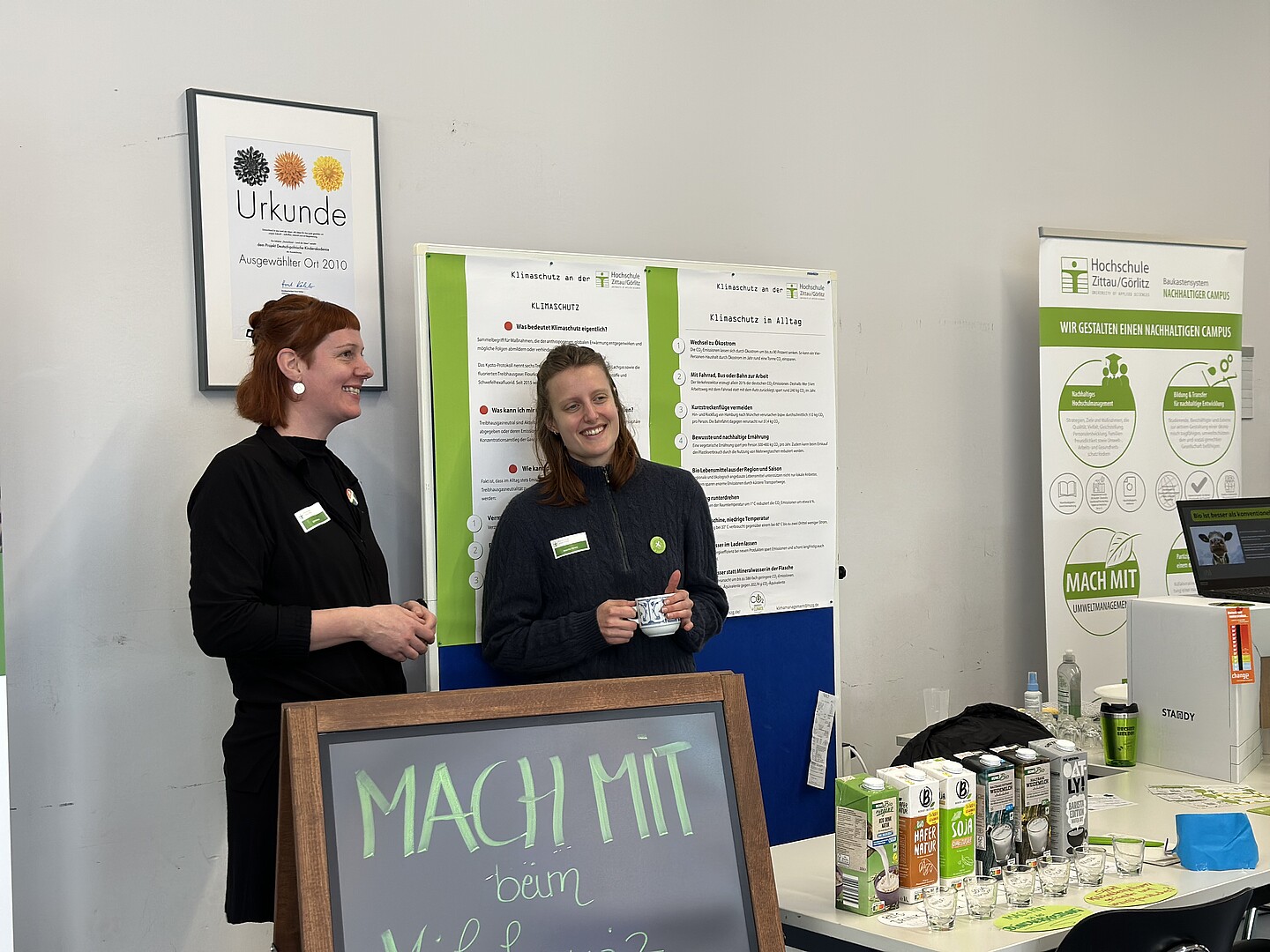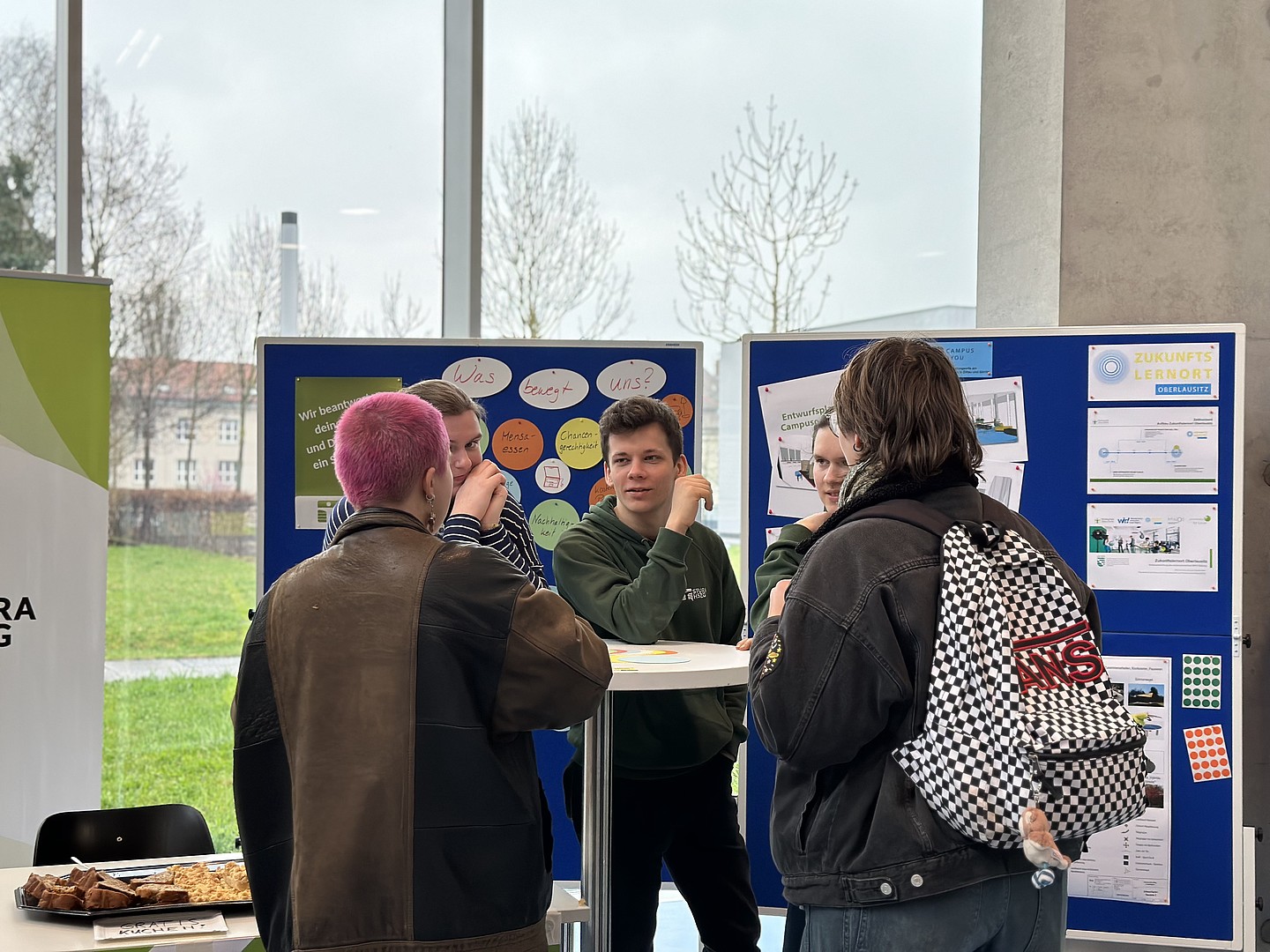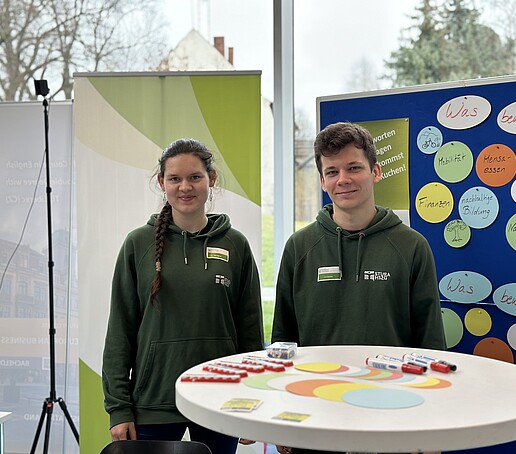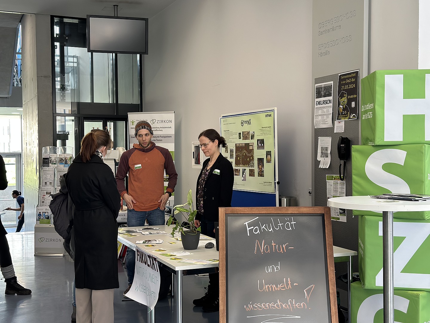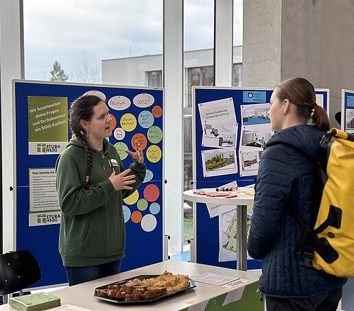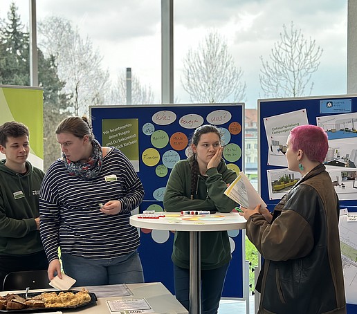 Beim Infostand „Zukunftslernort Oberlausitz – ZukLOS“ erfuhren Interessierte mehr über die geplanten Maßnahmen des Projekts und die künftige Umgestaltung von ausgewählten Lehr- und Aufenthaltsbereichen an der HSZG, die die Attraktivität der Hochschule steigern werden. Dabei konnten sie gleich ihre eigenen Ideen einbringen.