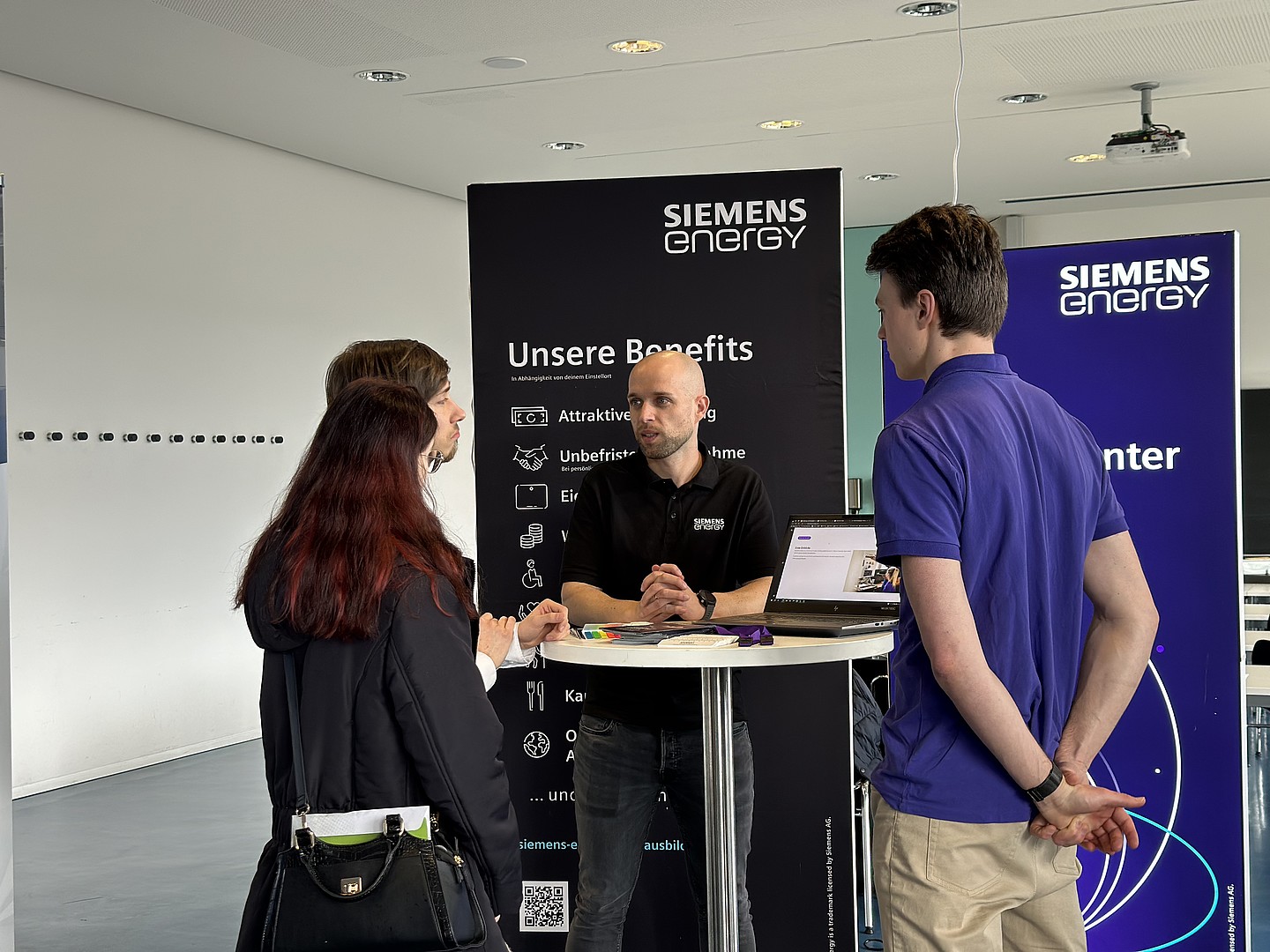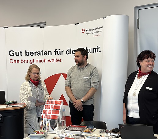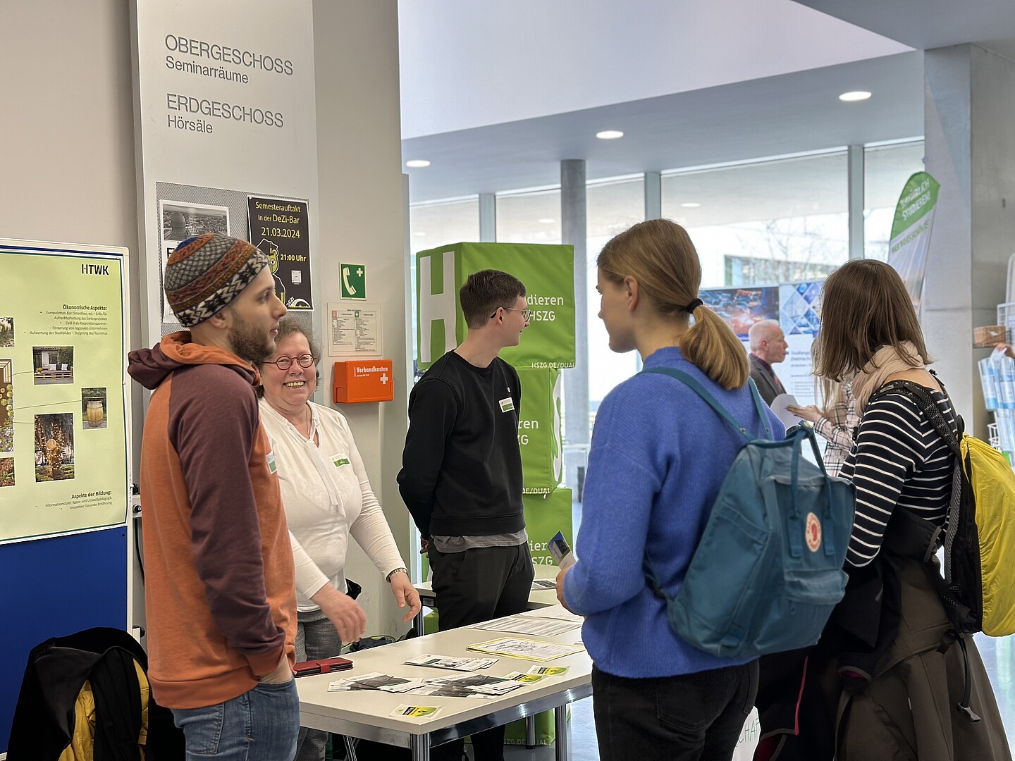 Die Bundesagentur für Arbeit war an beiden Standorten vertreten mit einem Stand zur Studienorientierung und Berufsberatung. Besuchende der Infostände zur MyHSZG-CampusApp erhielten Informationen aus erster Hand zu den Vorteilen und vielfältigen Möglichkeiten, die die neue App zur Studienorientierung und zur Organisation des Campuslebens bietet.