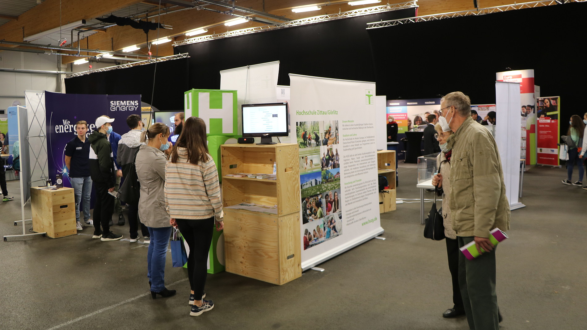 Natürlich darf die Hochschule Zittau/Görlitz als einer der wichtigsten Akteure der Oberlausitzer Wissenschafts- und Wirtschaftslandschaft auf so einem Event nicht fehlen. Gemeinsam mit anderen Partnereinrichtungen präsentierten wir unsere Angebote am Gemeinschaftsstand des SIEMENS ENERGY INNOVATIONSCAMPUS. Da die Messe sich an Menschen mit unterschiedlichen Anliegen und Interessen richtete, war das HSZG-Messeteam breit aufgestellt: