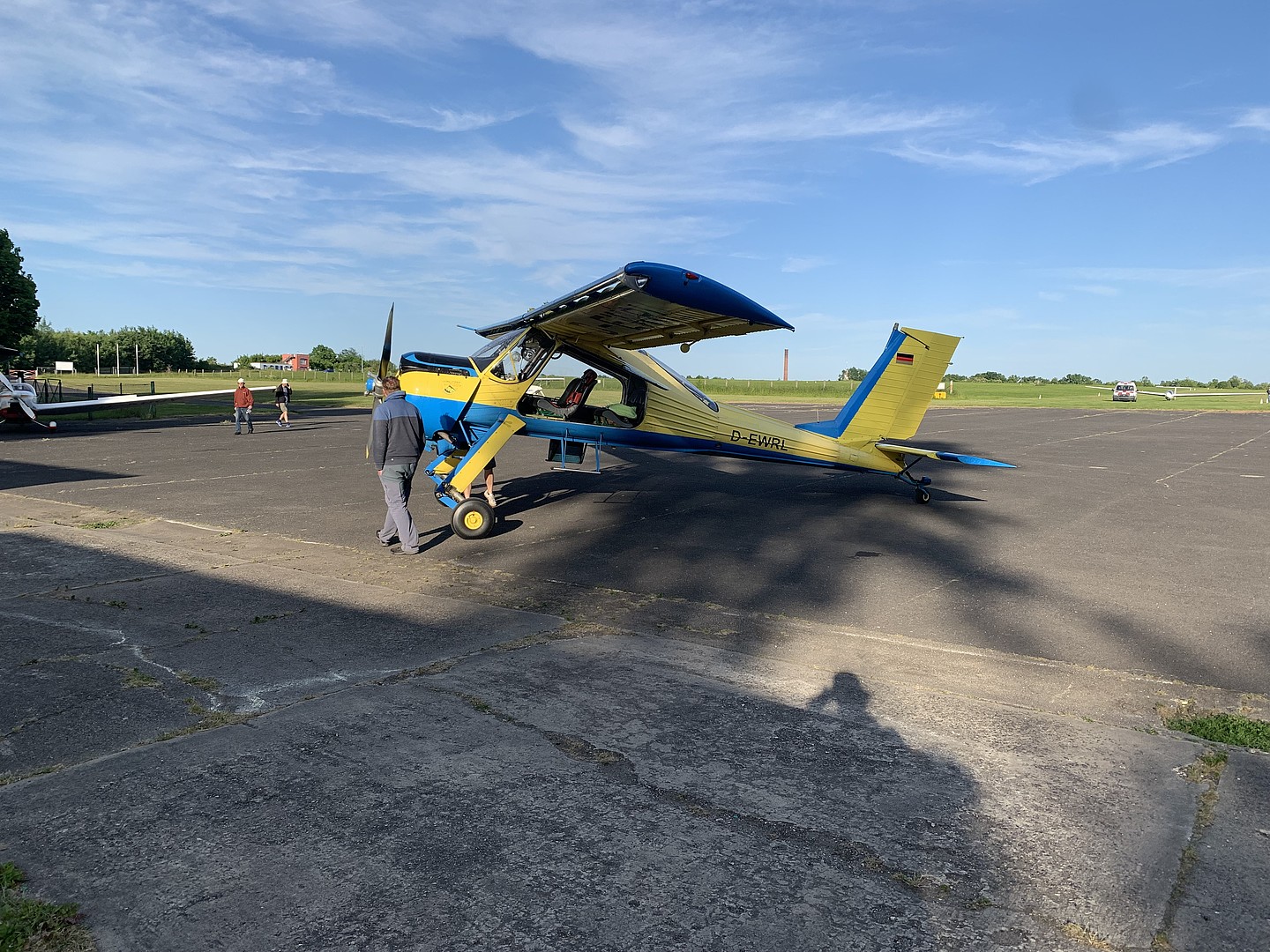 Prof. Kroschel selbst reiste aus Richtung Dresden mit einem Ultraleichtflugzeug des Typs Comco Ikarus C-42 an. Es handelt sich dabei um einen Zweisitzer mit einer Reisegeschwindigkeit von 150 km/h und einer Reichweite von über 600 km.