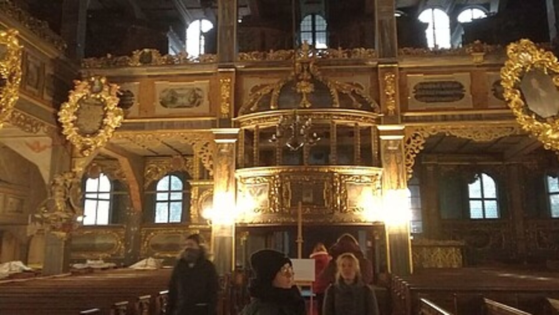 Nach der Besichtigung der Ausstellung in den oberen Stockwerken des Schlosses, die die adligen Bewohner und deren Alltag zeigt, geht es schon weiter zur letzten Station der Exkursion: die Friedenskirche Schweidnitz (heute Świdnica).