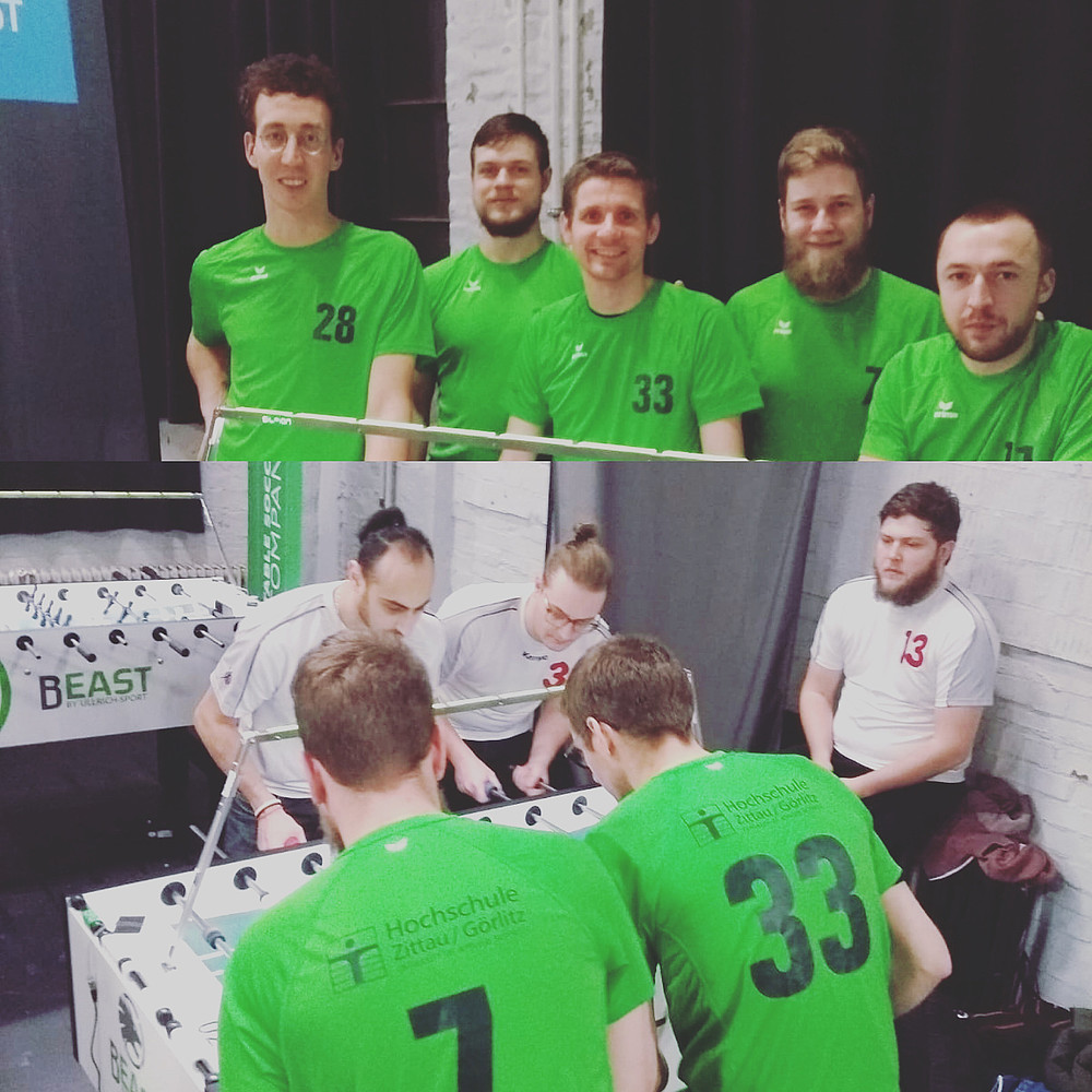 Am 25.01.2020 fand die Deutsche Hochschulmeisterschaft im Tischfußball in Hamburg statt. Unsere Auswahl nahm den weiten Weg auf sich, um sich mit anderen Hochschulen bzw. Universitäten im Tischfußball zu messen. Unsere HSZG belegte den 9. Platz von 14 teilnehmenden Hochschulen bzw. Universitäten bei den Deutschen Meisterschaften im Tischfußball. Vielen Dank für die Leistung und Daumen hoch für unser Team, dass unsere HSZG in Hamburg vertreten hat.