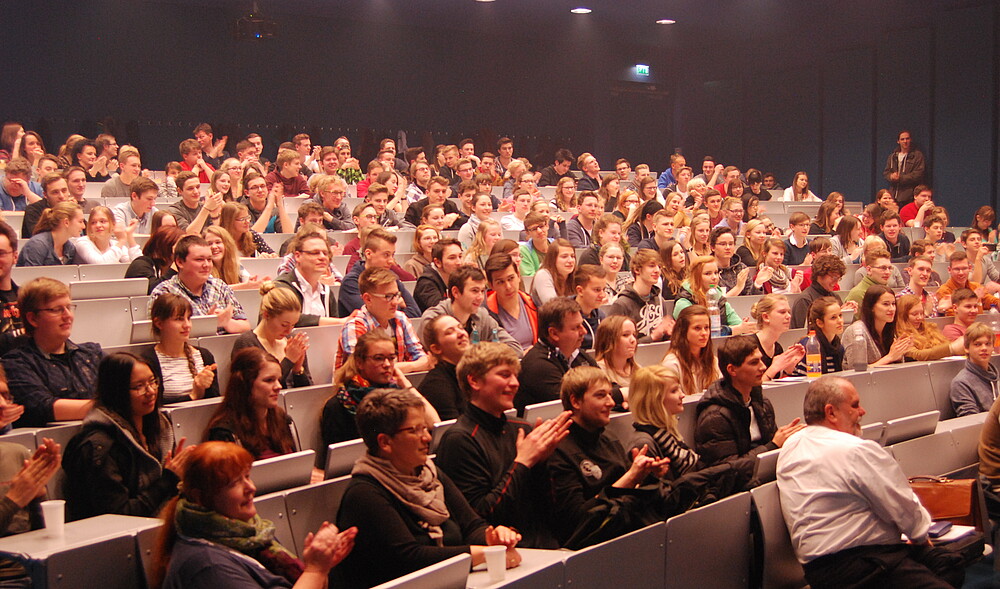 ...in gut gefüllten Hörsälen der Hochschule am 26. Februar 2015. Die Rolle der Chemie in verschiedensten Themenfeldern wurde den über 200 teilnehmenden Schülern und Lehrern aus ganz Ostsachsen nahegebracht.
