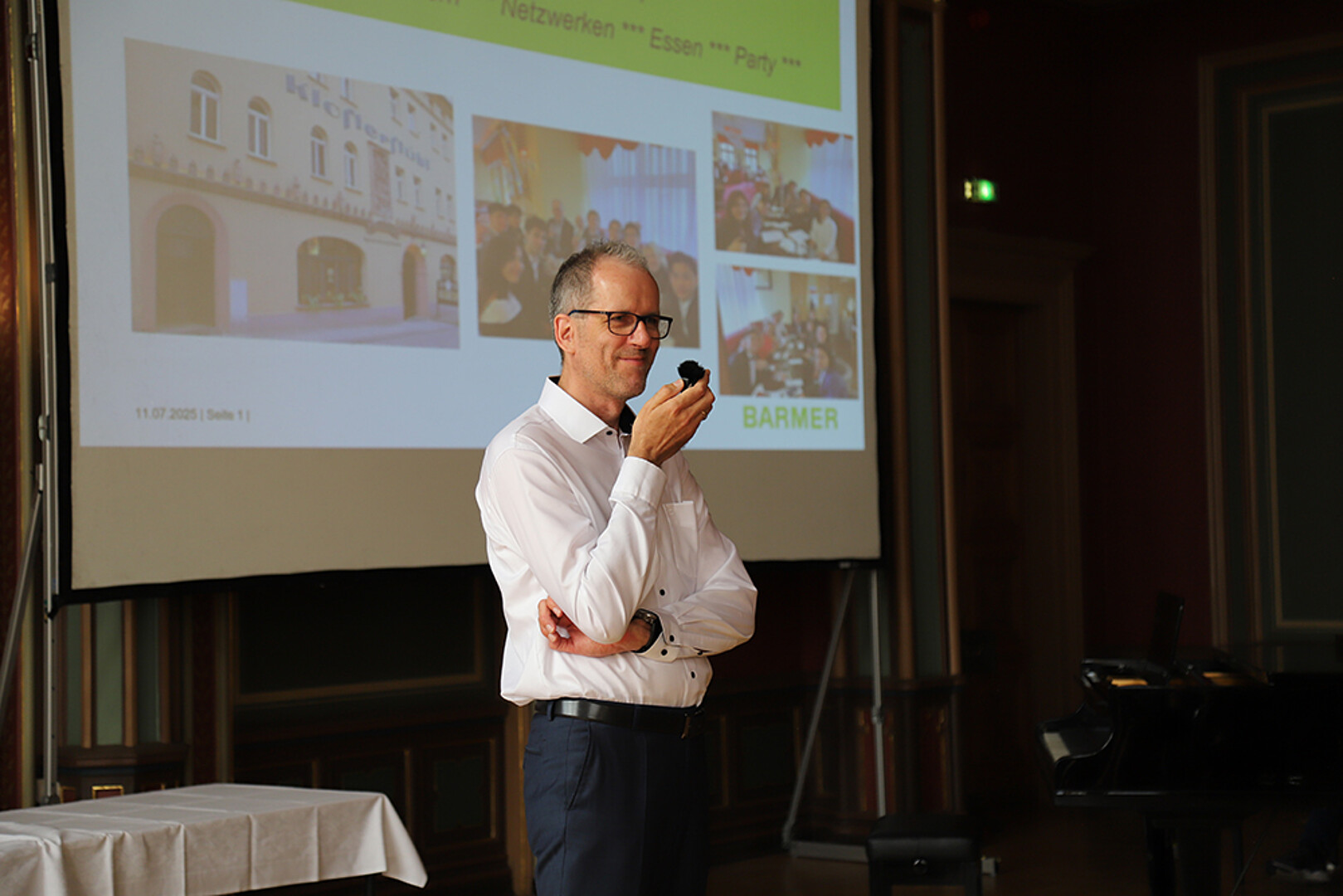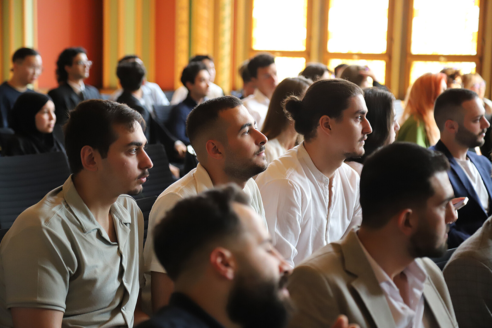 Witalij Schmidt, Lehrer für VWL/BWL und Mathematik am Studienkolleg, bedankte sich bei seinem Kurs für das ihm entgegengebrachte Vertrauen und verwies darauf, dass Wissen nicht alles sei. Er wünschte seinen Schützlingen, dass Erfahrung, Wertschätzung und Respekt ihre ständigen Begleiter werden.