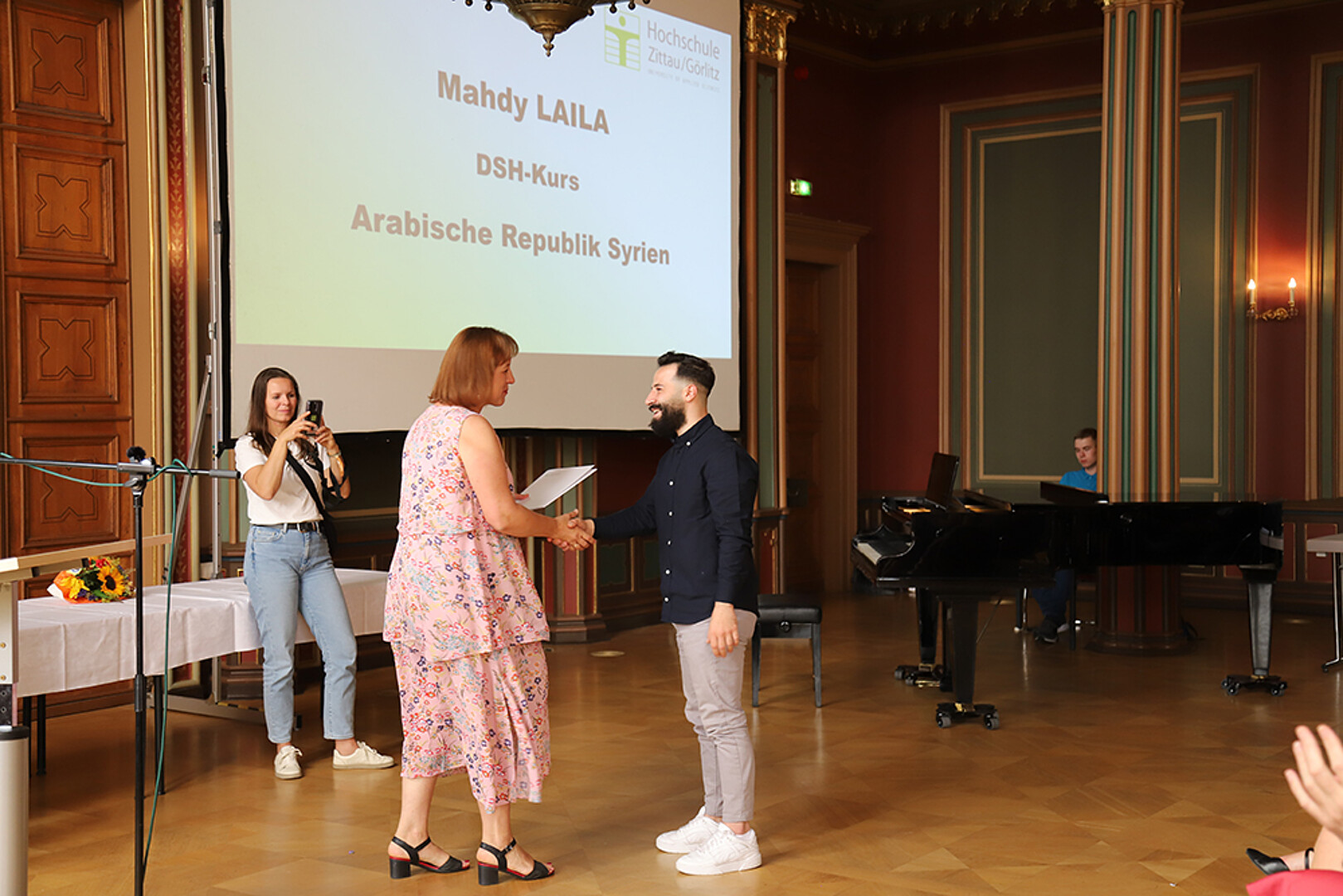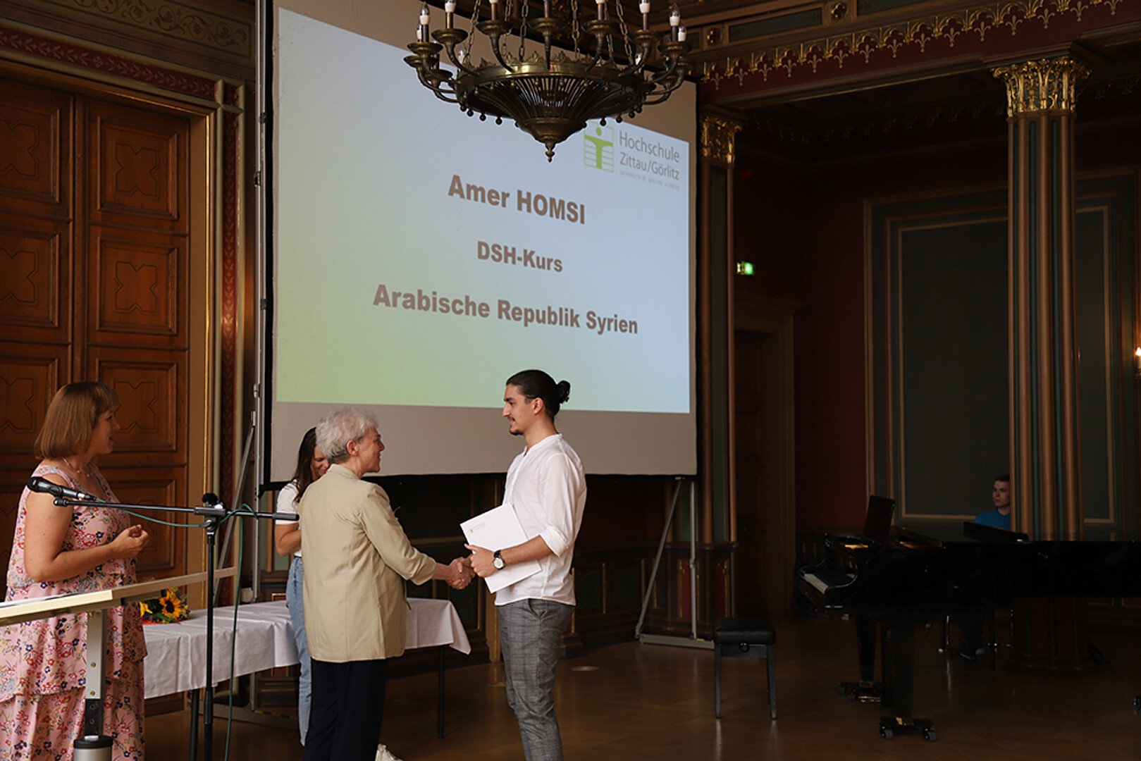 Die Zeichen hierfür sind gut: Von den TI-Kurs-Absolventinnen und -Absolventen haben 7 eine Vorzulassung an der HSZG erhalten, von den WW-Kurs-Absolventinnen und -Absolventen wollen 12 und von den DSH-Kurs-Teilnehmenden möchten 7 an der HSZG studieren. Die HSZG wünscht hierfür viel Erfolg.