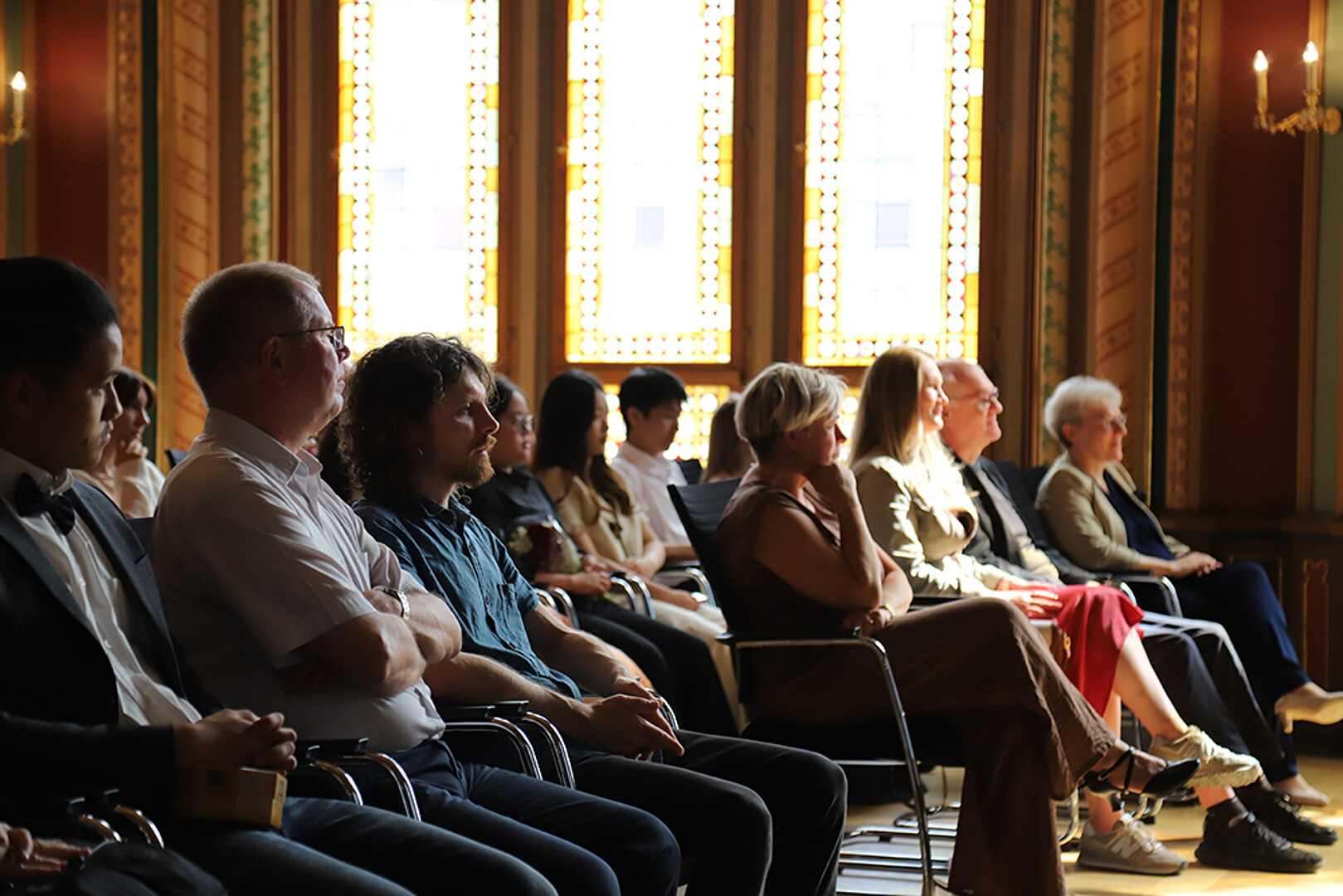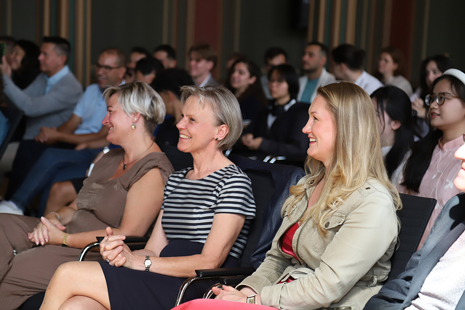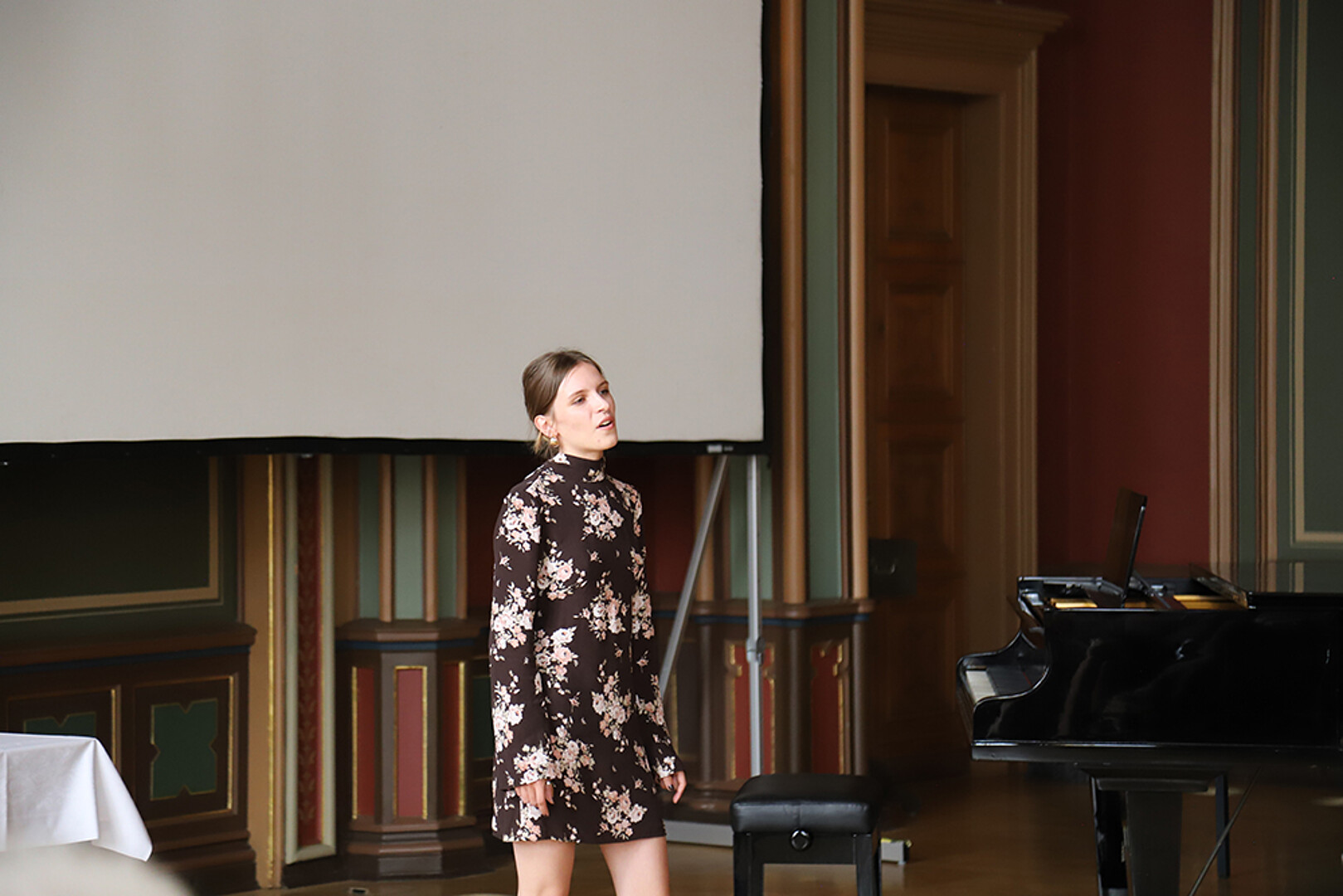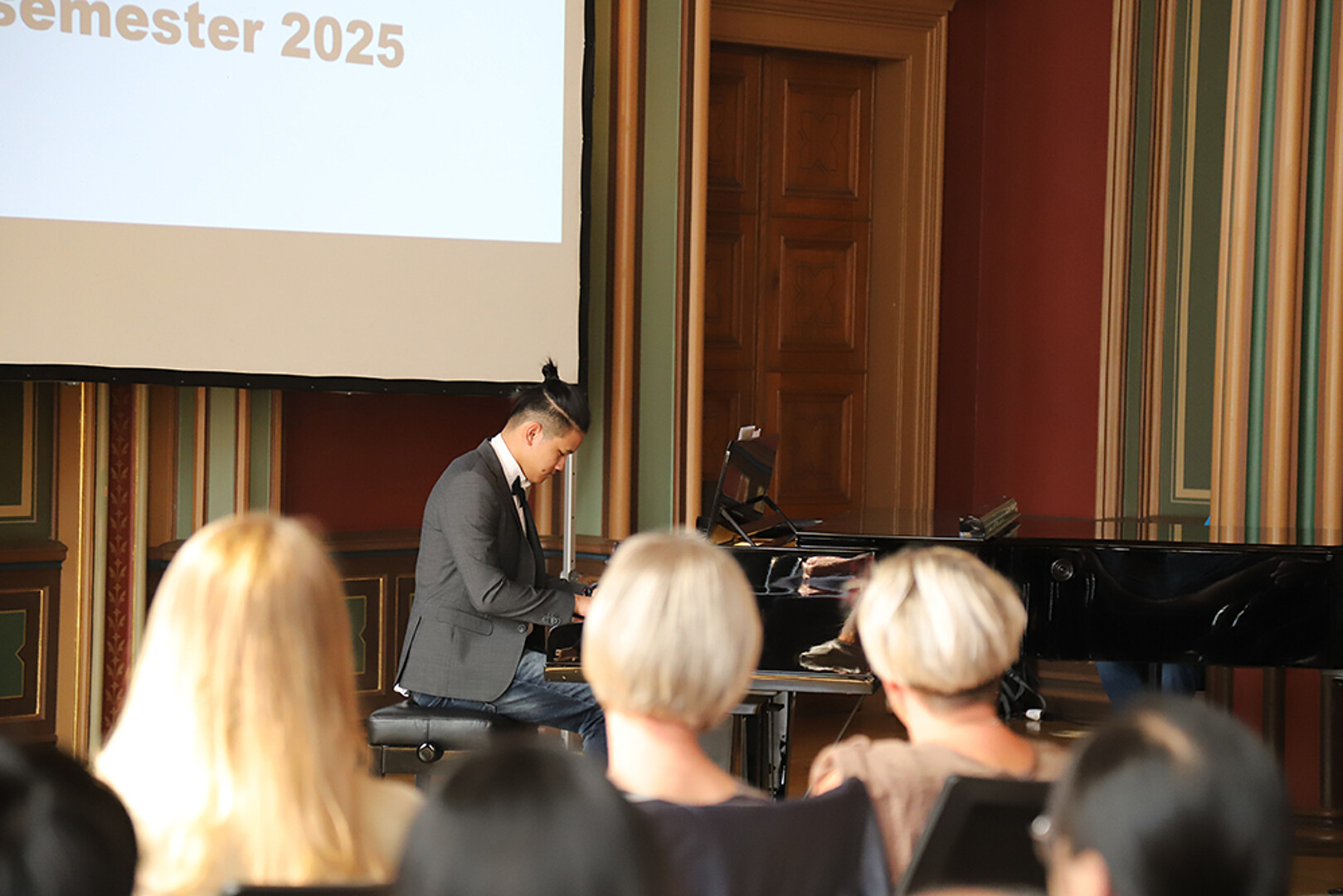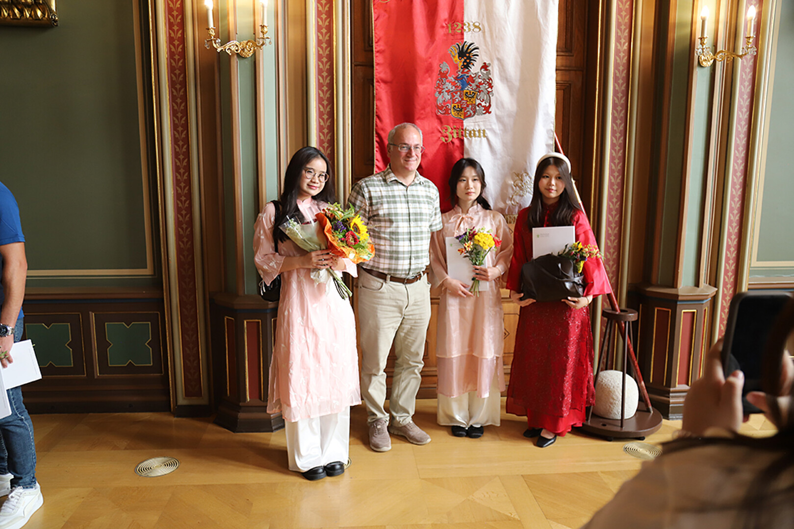 Eine besondere Würdigung erfuhren Olha Karpenko aus der Ukraine, Kim Nhat Minh Ngo aus Vietnam, Chi Dat Nguyen aus Vietnam und Natalia Kudasheva aus der Russischen Föderation, die als Beste bzw. Bester ihre jeweiligen Kurse abschlossen. Im Anschluss an die Zeugnisübergabe beeindruckte die Ukrainerin Olha das Publikum mit ihrem Gesang.