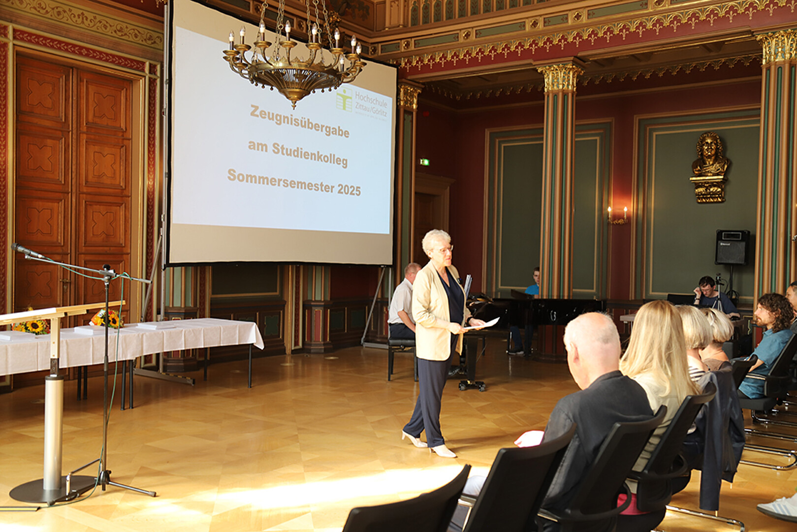 Unter dem Motto: „Die beste Vorbereitung für morgen ist, heute sein Bestes zu geben“  lud die Leiterin des Studienkollegs Ellen Leuschner am 11. Juli herzlich zur feierlichen Zeugnisübergabe an die Absolventinnen und Absolventen des Studienkollegs der Hochschule Zittau/Görlitz im Sommersemester 2025 ein.