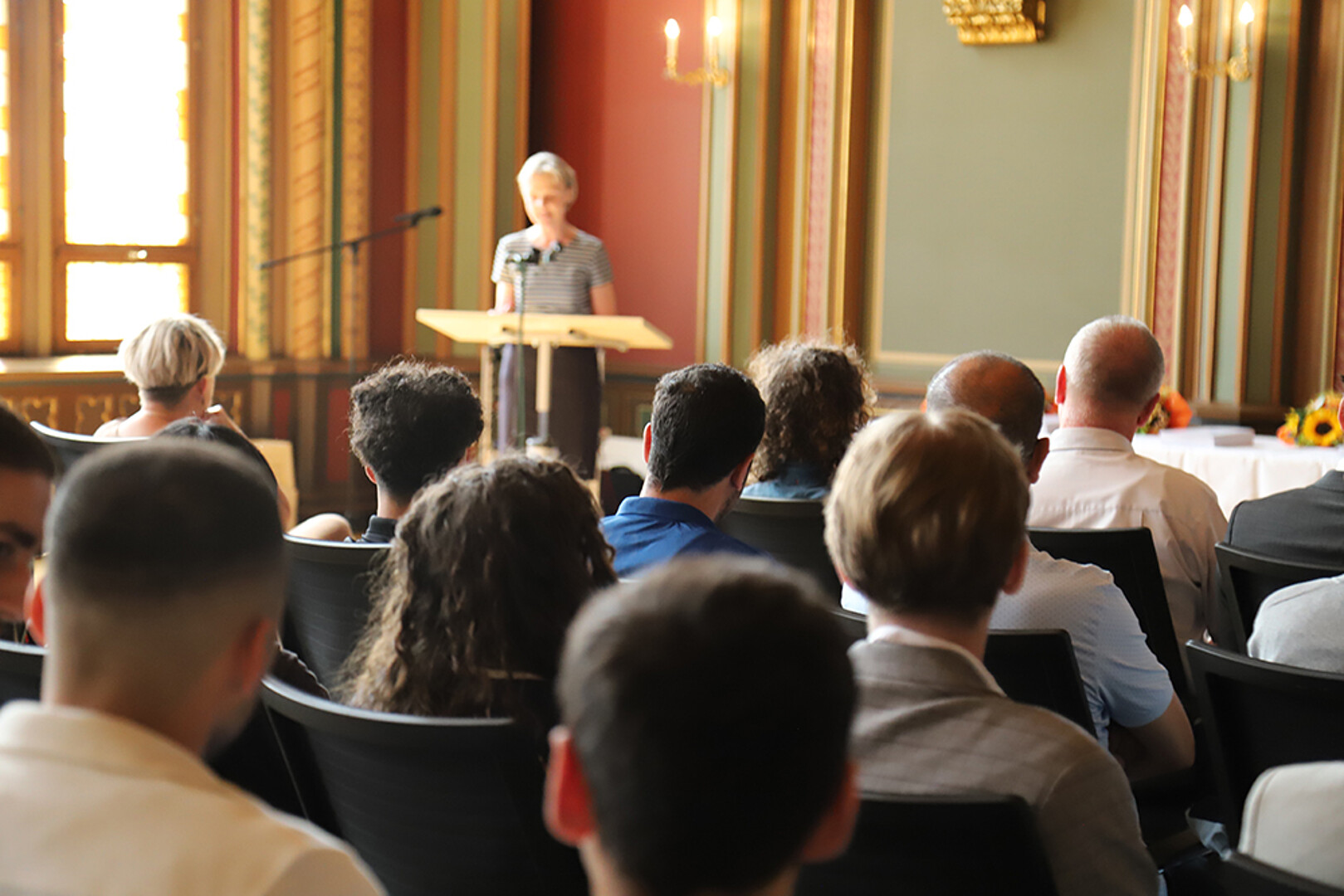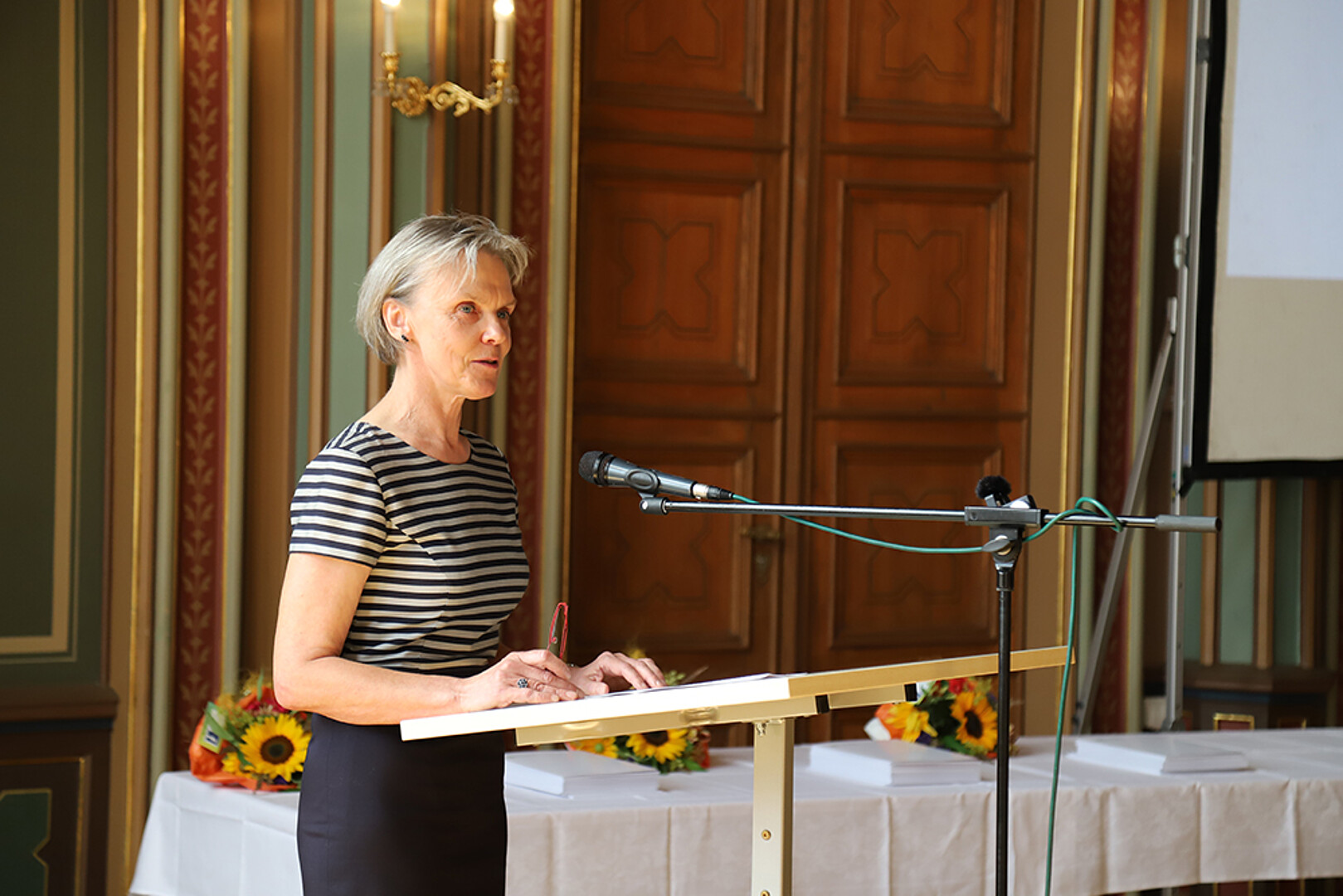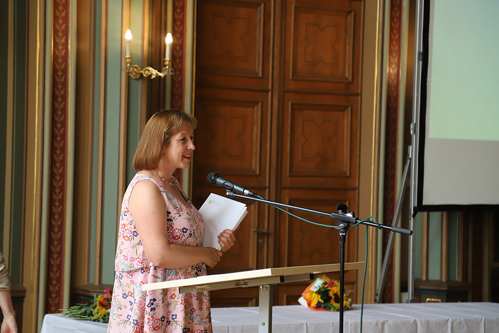 Feierliche Eröffnungsworte kamen von Ute Wunderlich. Die zweite Stellvertreterin des Zittauer Oberbürgermeisters und Stadträtin betonte, dass mit den Studienkollegiatinnen und -kollegiaten jedes Jahr viele Kulturen sowie politische und religiöse Einstellungen in Zittau zusammenkommen, von deren Vielfalt alle profitieren können. Sie versicherte den Absolventinnen und Absolventen in ihrer Rede, dass diese herzlich willkommen seien und hob die Bedeutung des Studienkollegs und der Hochschule für die Stadt, die Region und das Land hervor.