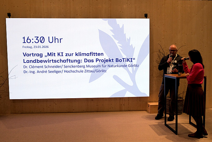 Das im letzten Jahr gestartete Forschungsprojekt BoTiKI war in Berlin bei der "Grünen Woche" zu Gast am Stand des Bundesministeriums für Umwelt, Klimaschutz, Naturschutz und nukleare Sicherheit (BMUKN). Vom 16. bis 25. Januar zog dieser in der Halle 27 „grünerleben“ des Messegeländes zahlreiche Neugierige an, die u. a. auch mehr über den Einsatz Künstlicher Intelligenz (KI) für den Natur- und Klimaschutz erfahren wollten.
