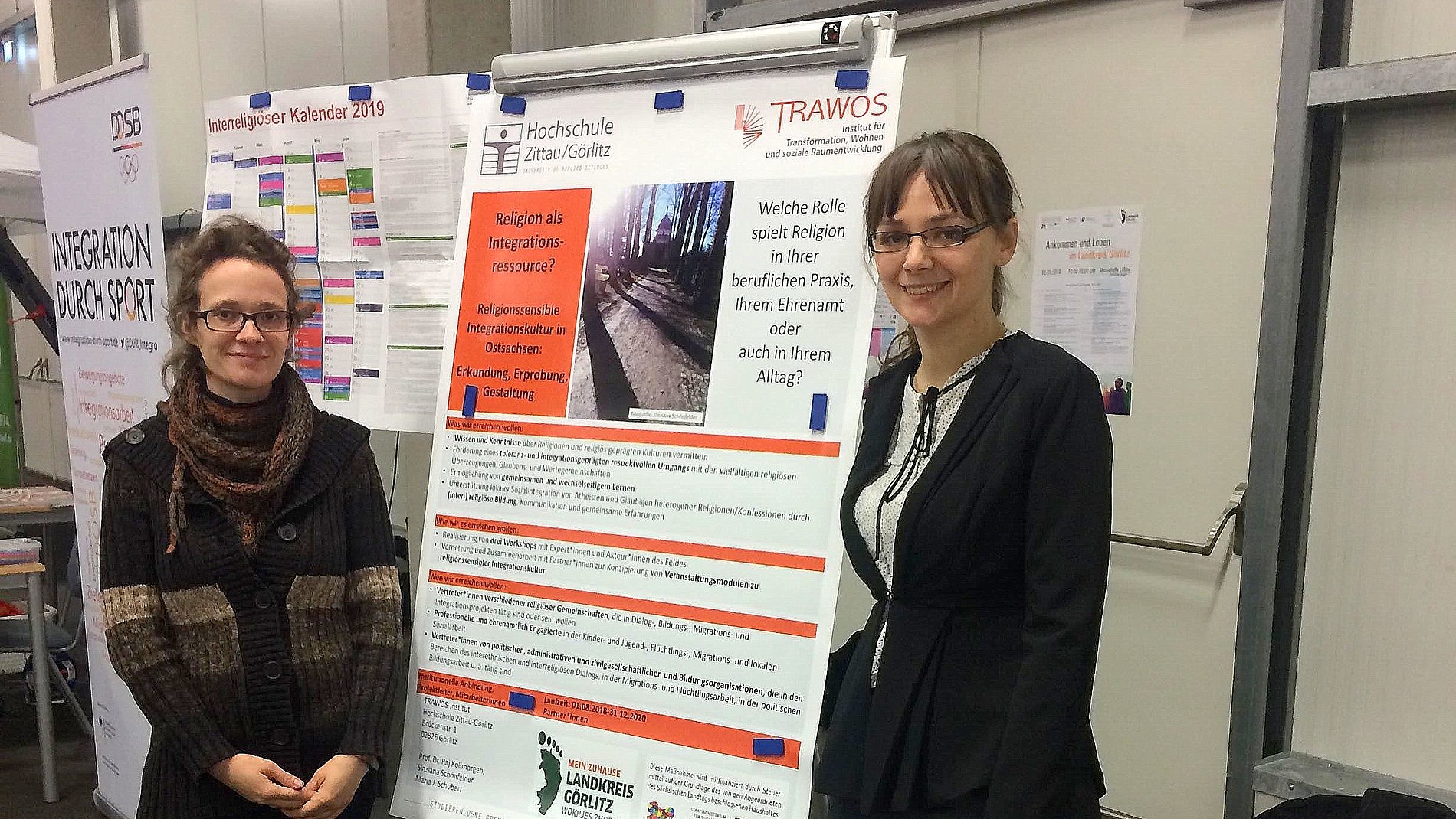 Außerdem nahm das Institut für Transformation, Wohnen und soziale Raumentwicklung (TRAWOS) mit einem Informationsstand zum im Rahmen des Landesprogramms Integrative Maßnahmen durch den Freistaat Sachsen geförderten Instituts-Projekt Religionssensible Integrationskultur in Ostsachsen – Erkundung, Erprobung, Gestaltung unter dem Motto „Religion als Integrationsressource?“ an der Messe teil.  Neben zahlreichen Vernetzungsgesprächen zu den weiteren AkteurInnen auf dem Messegelände, konnten sich Interessierte hier Literaturempfehlungen zu den Themen Religion, Migration und Integration mitnehmen.