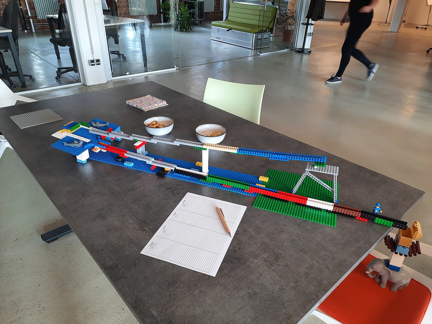 Am Ende wurde die Bauzeit noch auf 45 Minuten verlängert und beim gemeinsamen Pizzaessen danach ausgewertet, wer das kreativste Modell hatte, wer besonders ambitioniert herangegangen war und was wohl beim nächsten Mal die Aufgabe sein könnte. Der Test für das neue After-Work-Veranstaltungsformat ist auf jeden Fall geglückt – Mitarbeitende aus 3 Fakultäten, zentralen Einrichtungen und dem Fraunhofer IEG waren versammelt.