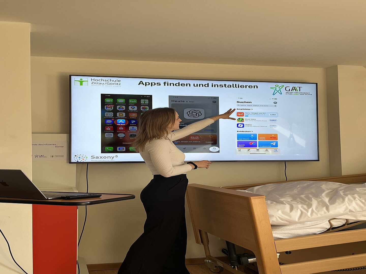 Wie richtet man WLAN sicher ein, wie funktioniert Videotelefonie und was genau ist eigentlich eine App? Diesen und vielen weiteren Fragen konnten Seniorinnen und Senioren am Montag, den 05. Mai 2025 im AAL-Labor in Görlitz auf den Grund gehen.