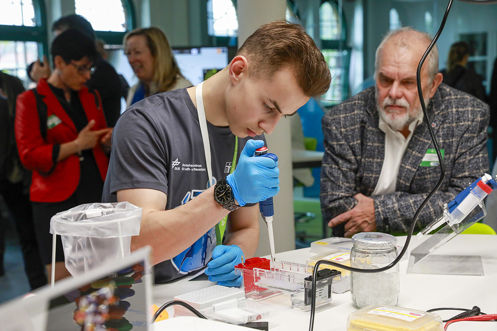 Ein Höhepunkt der Veranstaltung war der Gastvortrag des ESA-Astronauten Dr. Gerhard Thiele, der mit faszinierenden Einblicken in seine Weltraummission das Publikum begeisterte. Im Anschluss präsentierten Schülerinnen und Schüler den Gästen die wissenschaftlichen Experimente im DLR_School_Lab Hochschule Zittau/Görlitz. Sie hatten in den vergangenen Tagen gemeinsam mit dem Mentor*innen-Team der HSZG die Versuche erprobt und übernahmen nun selbstbewusst die fachkundige Einführung. Die geführten Besichtigungen sowie ein gemeinsamer Ausklang am Campus rundeten den Tag ab.