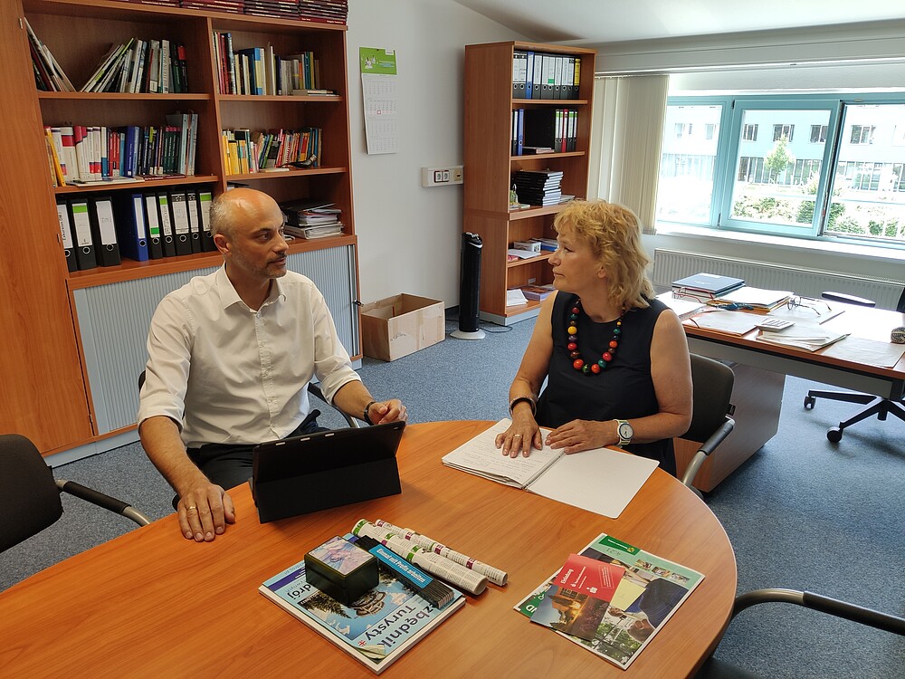 Genau an solche Formate will Dekan Maiwald anknüpfen und Transferaspekte nicht nur stärker in die Lehre, sondern auch in die Forschung im Rahmen von Projektarbeiten und Forschungsseminaren sowie bei Bachelorarbeiten – wenn möglich studiengangsübergreifend – integrieren. Die Themen und Ergebnisse der angewandten Forschung sollen darüber hinaus auch verstärkt gegenüber potenziellen Studierenden, Unternehmen, Partnern und Netzwerken kommuniziert werden -einerseits um Anknüpfungspunkte für Praktika, Werksstudentenjobs oder Abschlussarbeiten zu schaffen und andererseits, um die Fakultät und damit die Hochschule noch sichtbarer als regional und grenzübergreifend wichtigen Mitspieler bei der Ausbildung von Arbeitskräften und der Beantwortung von Fragen des Strukturwandels zu positionieren.