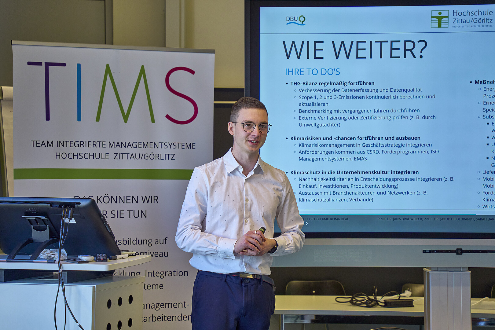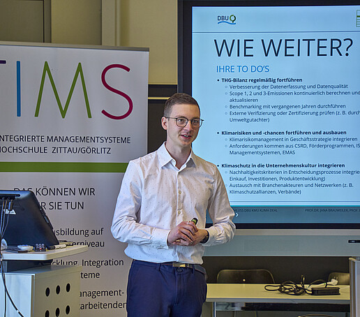 Das Team Integrierte Managementsysteme der Hochschule Zittau/Görlitz befasst sich seit Jahren mit den Herausforderungen und Chancen des Klimamanagements in der Unternehmenspraxis. Im Rahmen eines durch die Deutsche Bundesstiftung Umwelt (DBU) geförderten Projekts haben wir 10 Unternehmen aus verschiedenen Branchen bei der Ausarbeitung eines Fahrplans zur Klimaneutralität unterstützt.