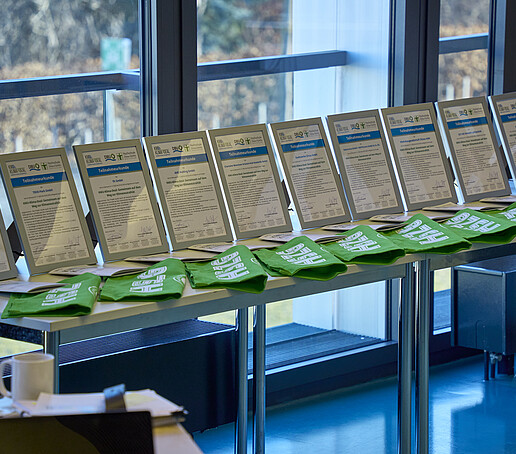 Als besonderes Highlight unseres Abschlussworkshops konnten wir unseren 10 stolzen Unternehmen ihre individuellen Klima-Roadmaps, das von uns entwickelte und von den Unternehmen ausgefüllte THG-Bilanzierungs-Tool sowie die persönlichen Teilnahmezertifikate überreichen.
