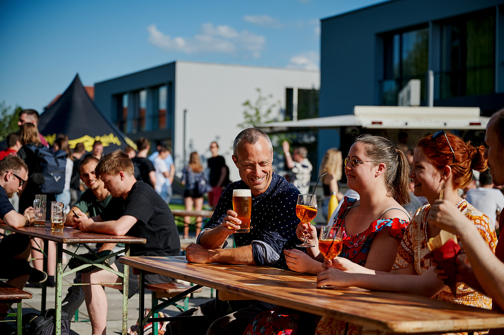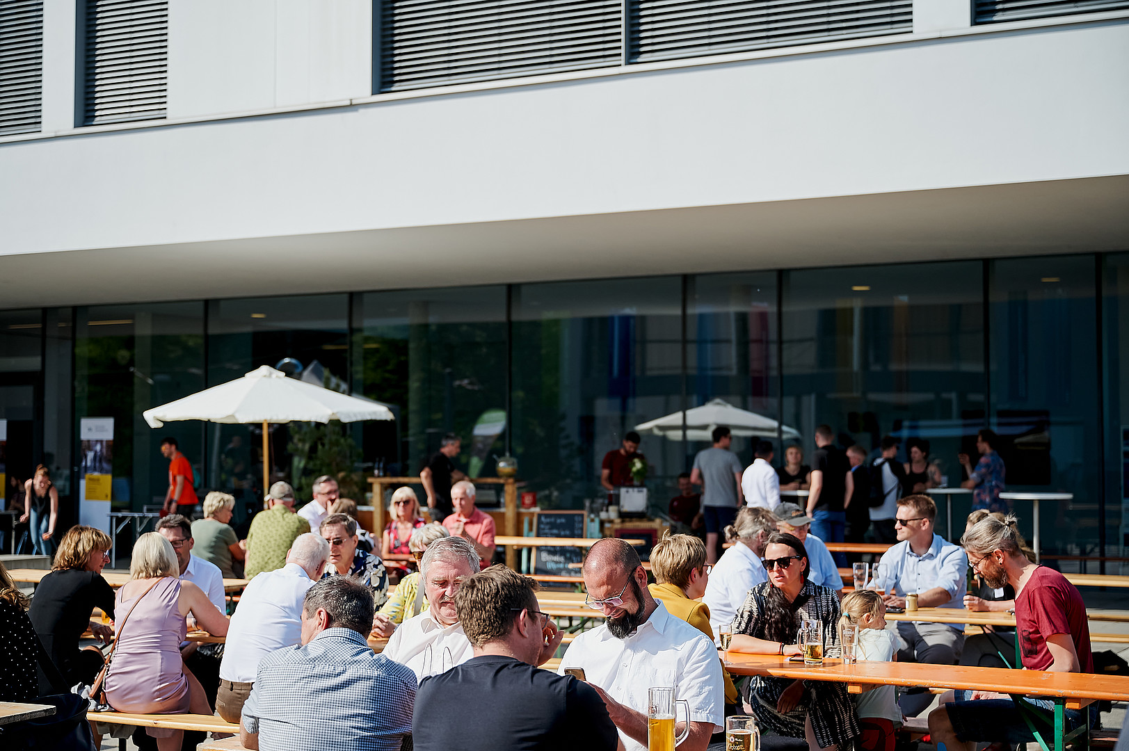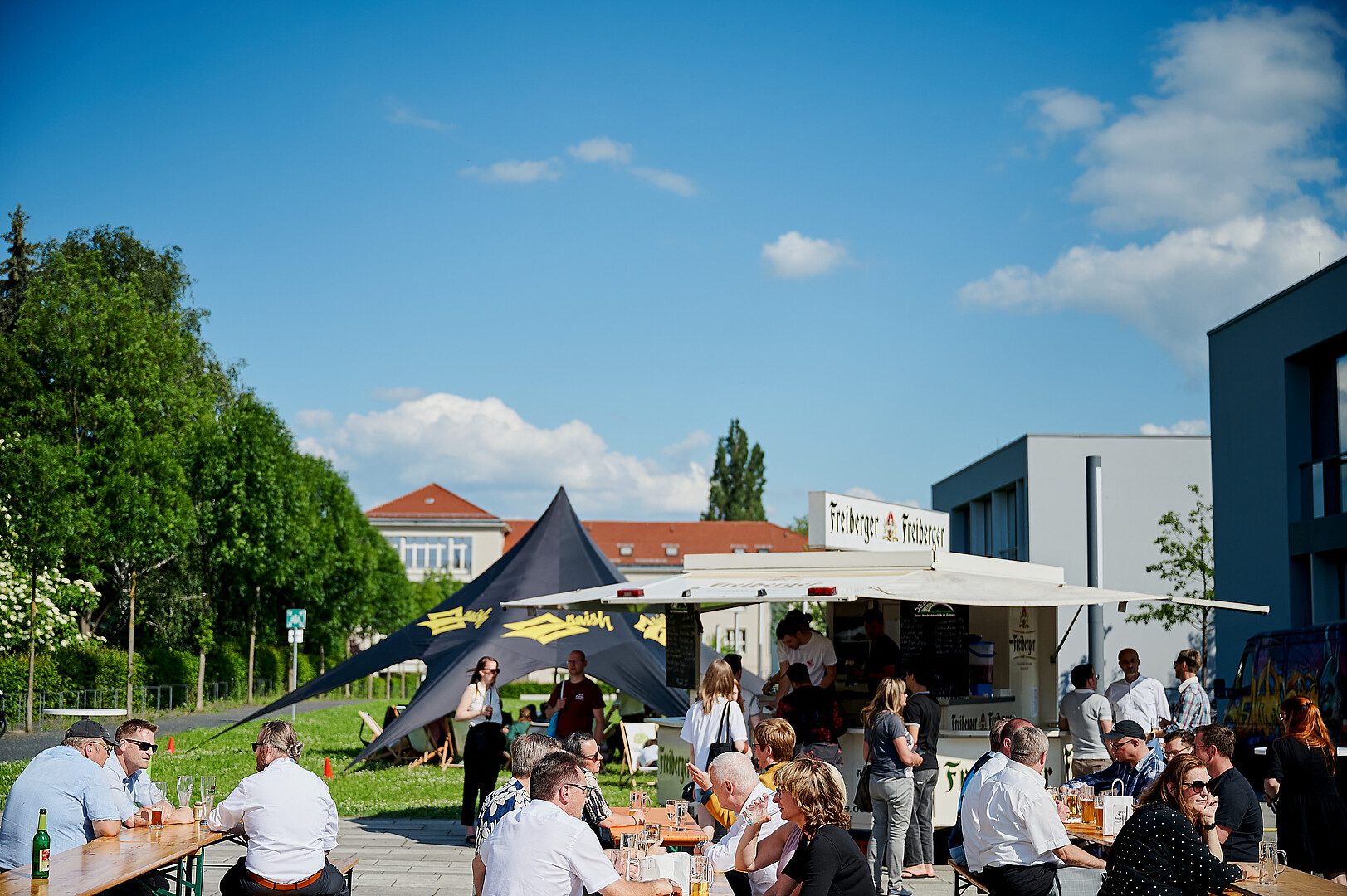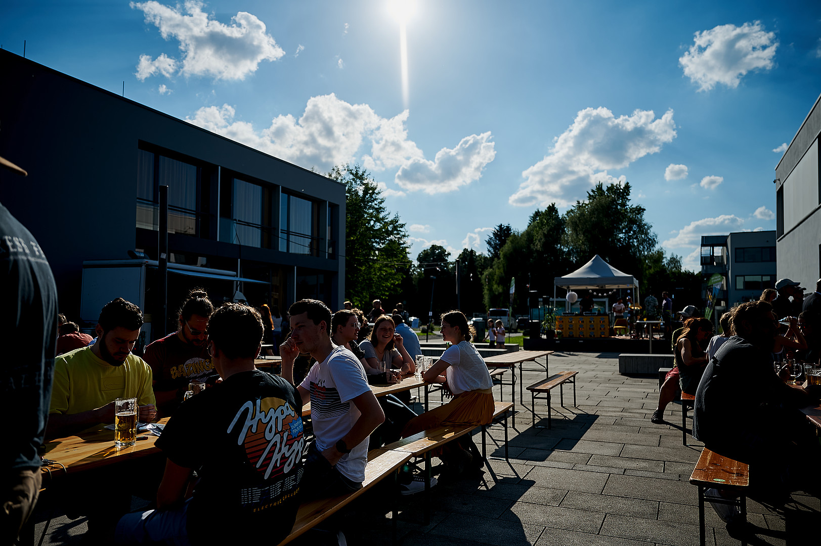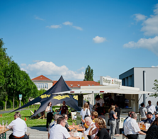 Den Festakt moderierten gewohnt charmant und mit Witz unsere Studierenden Carolin Renner und Cornelius Baier. Im Anschluss nutzen die Gäste die Möglichkeit, in verschiedenen Führungen die Stadt Zittau sowie die HSZG am Standort Zittau besser kennenzulernen. Voll bepackt mit neuen Eindrücken ging es dann auf den Campus zur After Work & Study Party. Dort konnten die Gäste ganz individuell mit Kolleg*innen und Studierenden in Kontakt kommen und sich austauschen. Ein hervorragender Abschluss dieses Jubiläumstages bei ganz entspannter Atmosphäre, schönstem Wetter, toller DJ-Musik, leckerem Essen und kühlen Drinks.