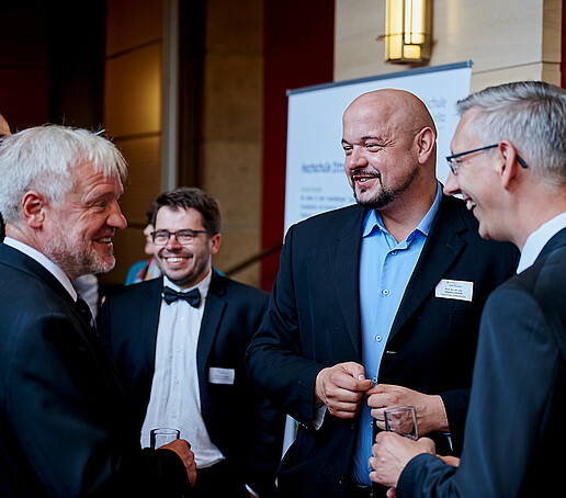In einer zweiten Gesprächsrunde zum Thema „30­ Jahre HAW Sachsen: Blick zurück nach vorn“ kamen die Rektorin und die Rektoren der HAW Sachsen zu Wort. Prof. Ludwig Hilmer, Rektor der Hochschule Mittweida, zeigte sich begeistert davon, wie die Wissenschaftspolitik auf die HAW blickt und ist als Dienstältester Rektor nach wie vor fasziniert vom Modell der HAW. Die Rektorin der HTW Dresden, Prof. Katrin Salchert, stellte fest, dass die Bedeutung von Forschung und Transfer sowie der Interaktion mit der Gesellschaft insgesamt zugenommen hat. Für diese hinzugekommenen Aufgaben gilt es, neue Lösungen zu finden. Damit die HAW weiter ihre Innovationsstärke ausspielen können, müssen neue Gestaltungsräume eröffnet werden, betonte der Rektor der HTWK Leipzig, Prof. Mark Mietzner. Dazu gehört für ihn auch das Thema der Promotionsmöglichkeiten. Prof. Stephan Kassel, Rektor der Westsächsischen Hochschule Zwickau, formulierte am Ende der Gesprächsrunde Wünsche an die Politik: