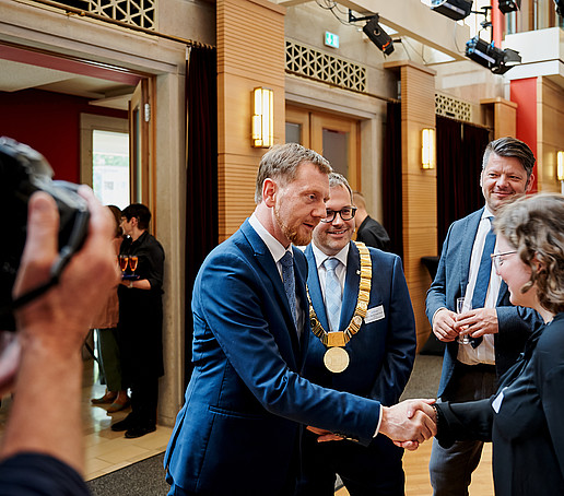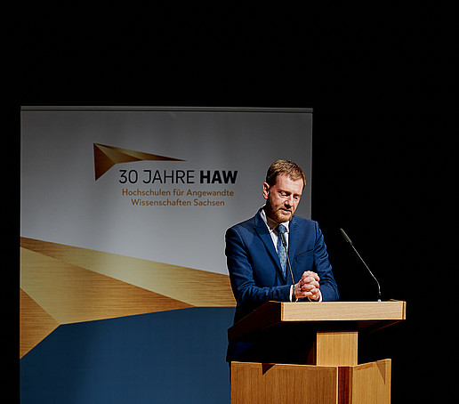 Der sächsische Ministerpräsident Michael Kretschmer griff in seiner nachfolgenden Rede die Metapher der „Kraftzentren der Region“ auf, blickte zurück auf die aufregenden Jahre rund um 1992, als die sächsischen Fachhochschulen gegründet wurden und konkludierte: