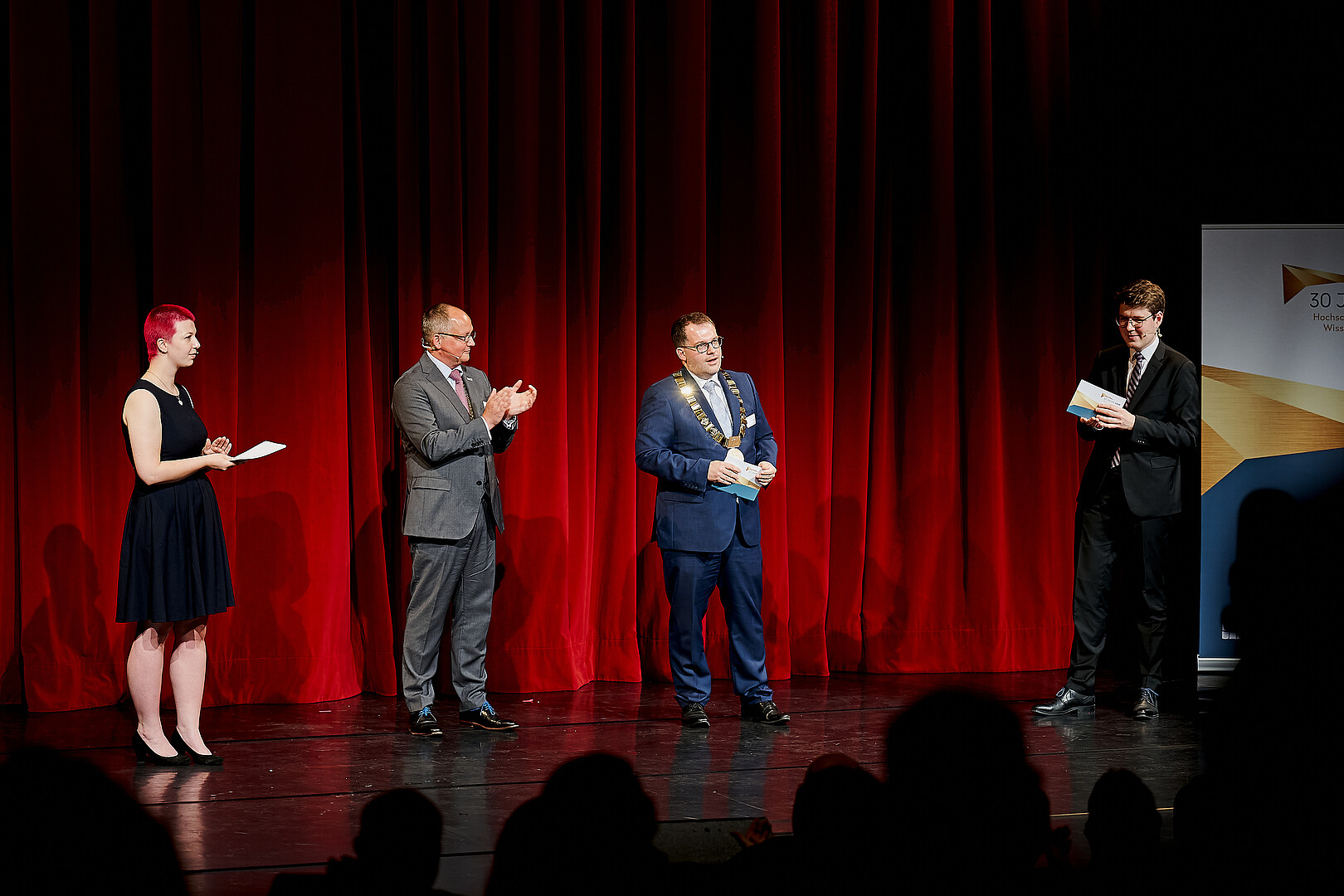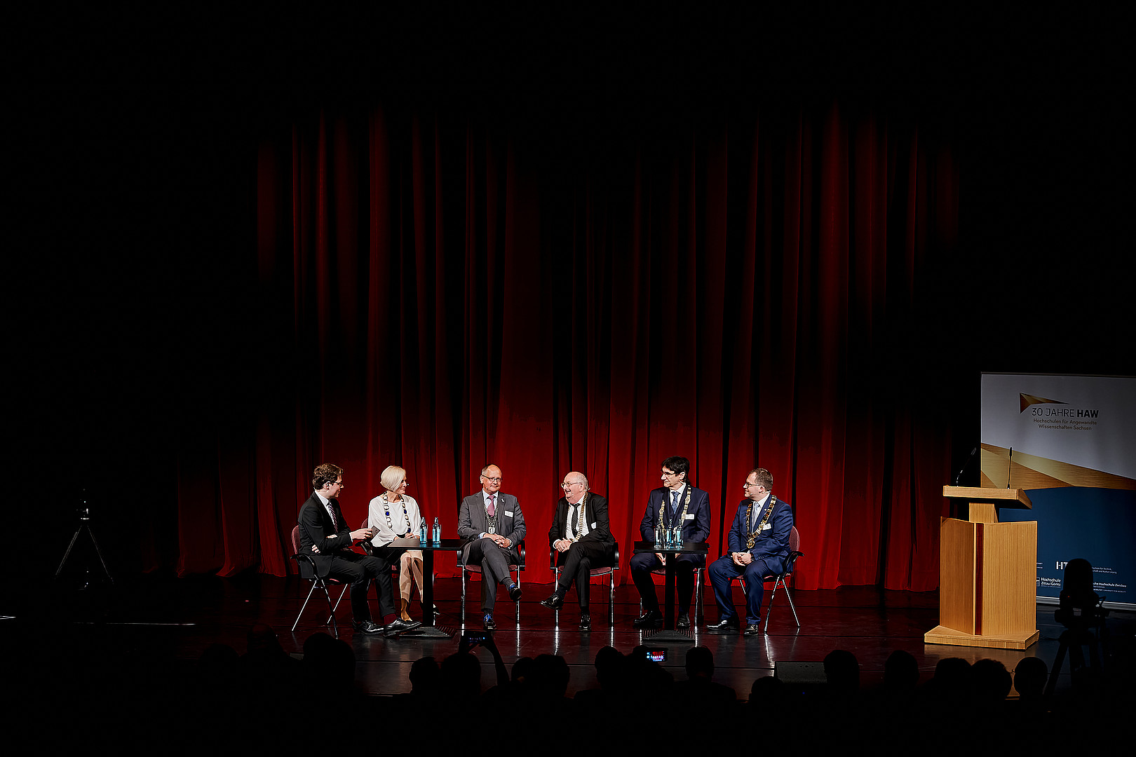 Mit einem eindrucksvollen Plädoyer für die bedeutende Rolle der Hochschulen für Angewandte Wissenschaften (HAW) im deutschen Bildungssystem richtete sich Bundesministerin Bettina Stark-Watzinger in ihrer digitalen Grußbotschaft an die rund 200 Gäste im Zittauer Gerhart-Hauptmann-Theater. Menschen aus ganz Sachsen, aber auch aus den Nachbarländern Polen und Tschechien, waren dort am 10. Juni 2022 zusammengekommen, um das 30-Jährige Bestehen der Sächsischen Hochschulen für Angewandte Wissenschaften zu feiern.