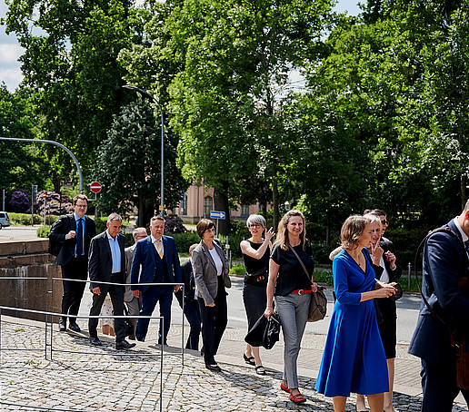 In ihrem Grußwort betonte die Bundesministerin, dass die HAW aufgrund ihrer anwendungsorientierten Lehre für Schulabsolvent*innen höchst attraktiv sind. Für das bildungspolitisch bedeutsame Vorhaben der Bundesregierung der „Deutschen Agentur für Transfer und Innovation (DATI)“ stellen die HAW vielversprechende Partner dar. Sie betonte in diesem Zusammenhang besonders die starke Verknüpfung der Forschung an den HAW mit der Frage nach der praktischen Anwendung. So bauen die HAW stabile Brücken zwischen gesellschaftlicher Nachfrage, Wirtschaft und Wissenschaft. Stark-Watzinger beschrieb die Rolle der HAW als Kraftzentren der Regionen und sieht in ihnen: „Einen großen Schatz, der Entwicklung verspricht.“